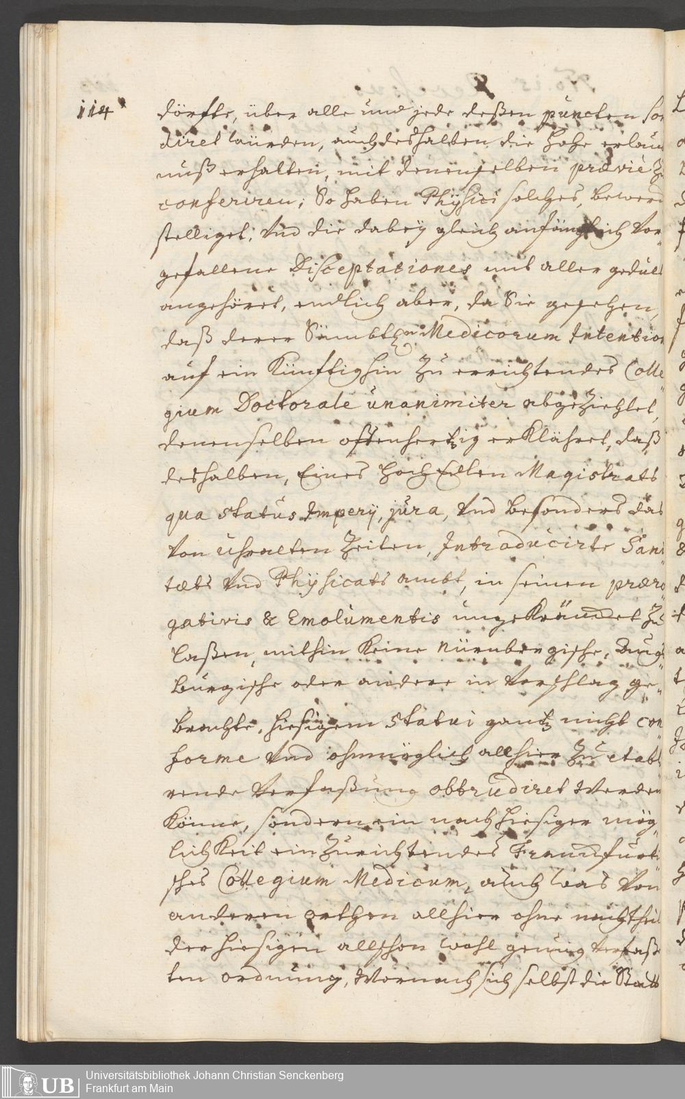 Na 31 Nachlass Johann Christian Senckenberg, 294 - Vorschläge und Gutachten zur Verbesserung des Medizinalwesens in Frankfurt