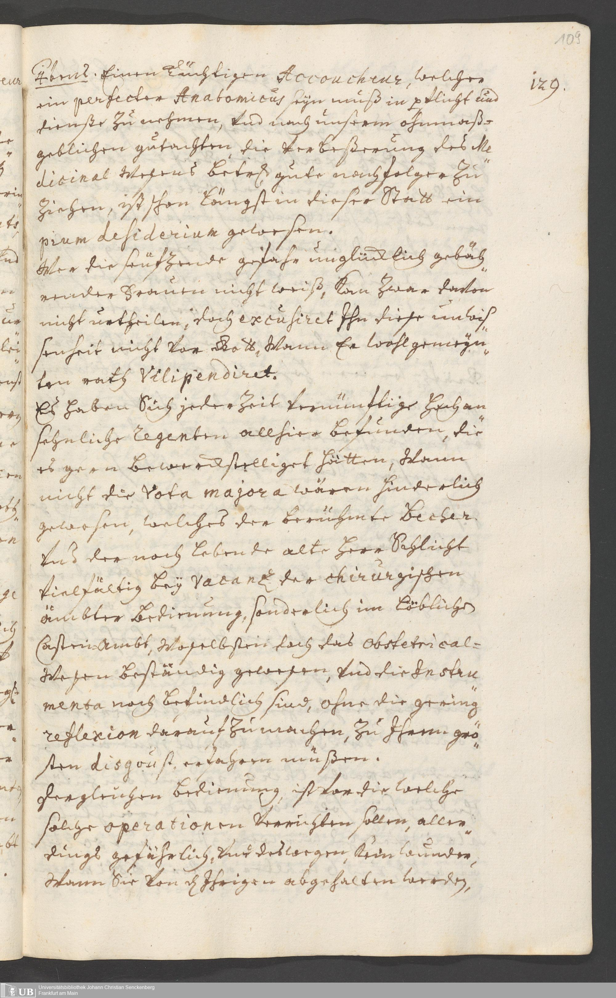 Na 31 Nachlass Johann Christian Senckenberg, 294 - Vorschläge und Gutachten zur Verbesserung des Medizinalwesens in Frankfurt