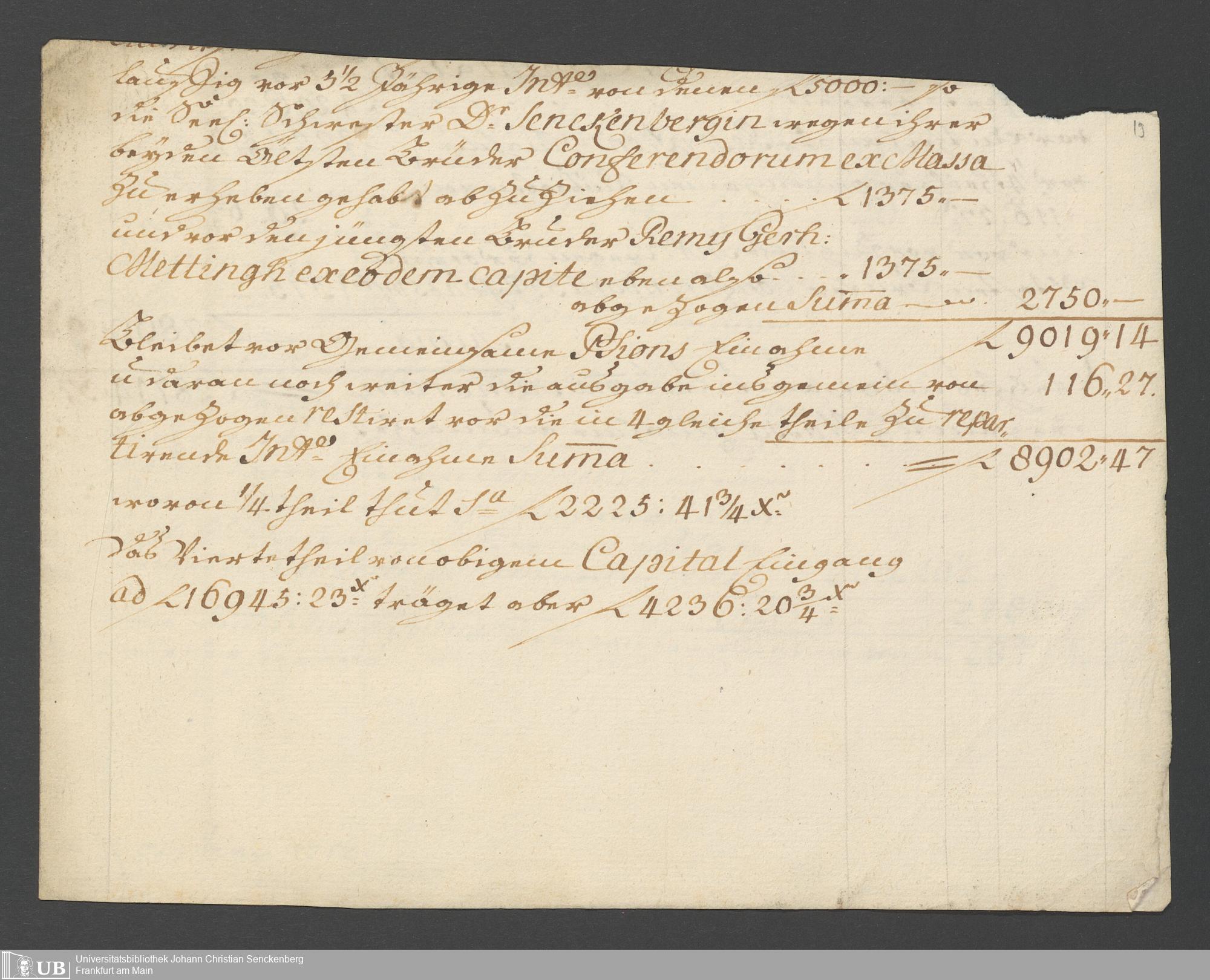 Na 31 Nachlass Johann Christian Senckenberg, 326 - Erbauseinandersetzung Mettingh IV
