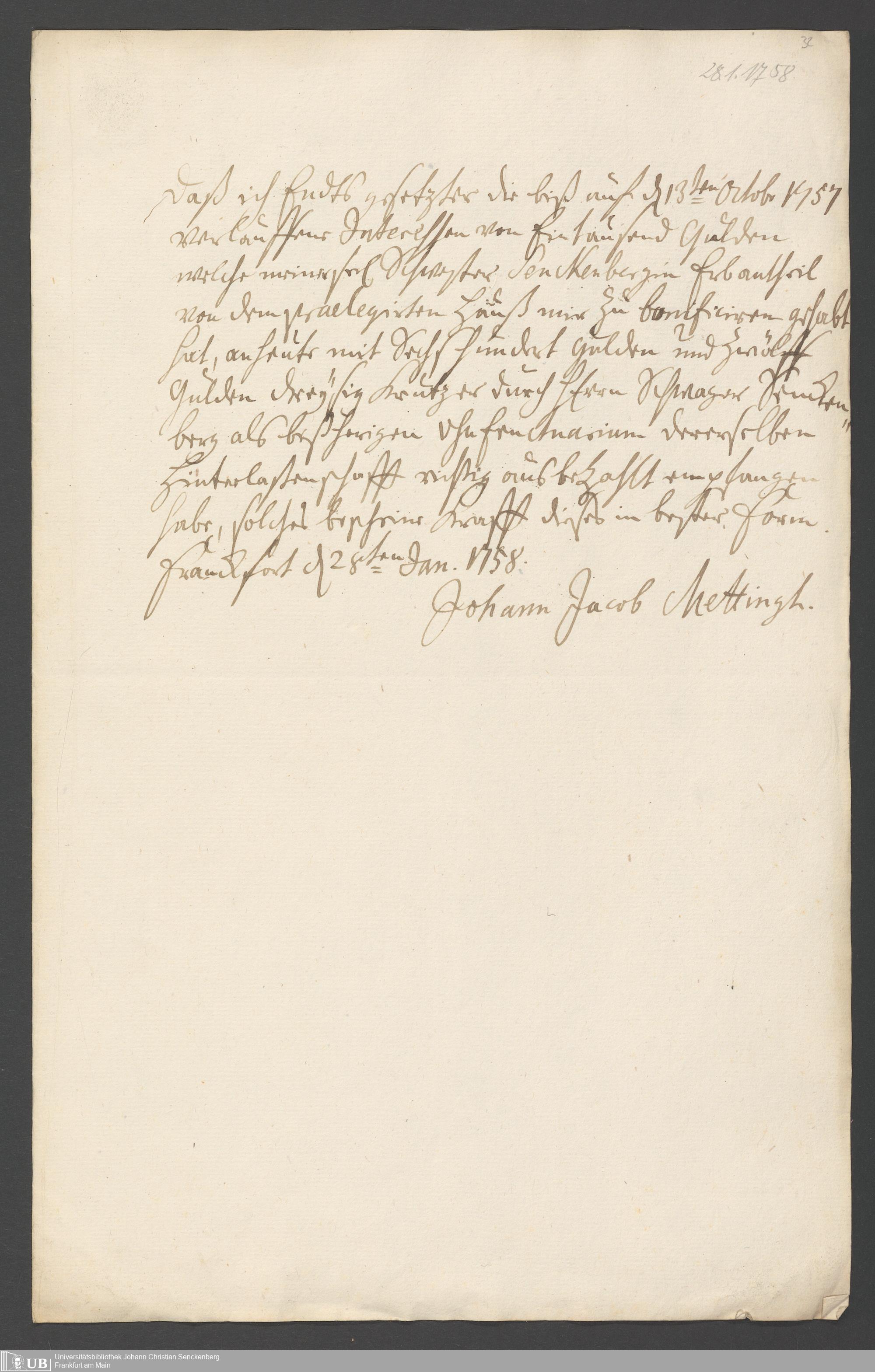 Na 31 Nachlass Johann Christian Senckenberg, 326 - Erbauseinandersetzung Mettingh IV