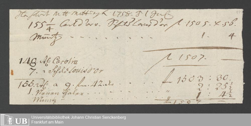 Na 31 Nachlass Johann Christian Senckenberg, 326 - Erbauseinandersetzung Mettingh IV