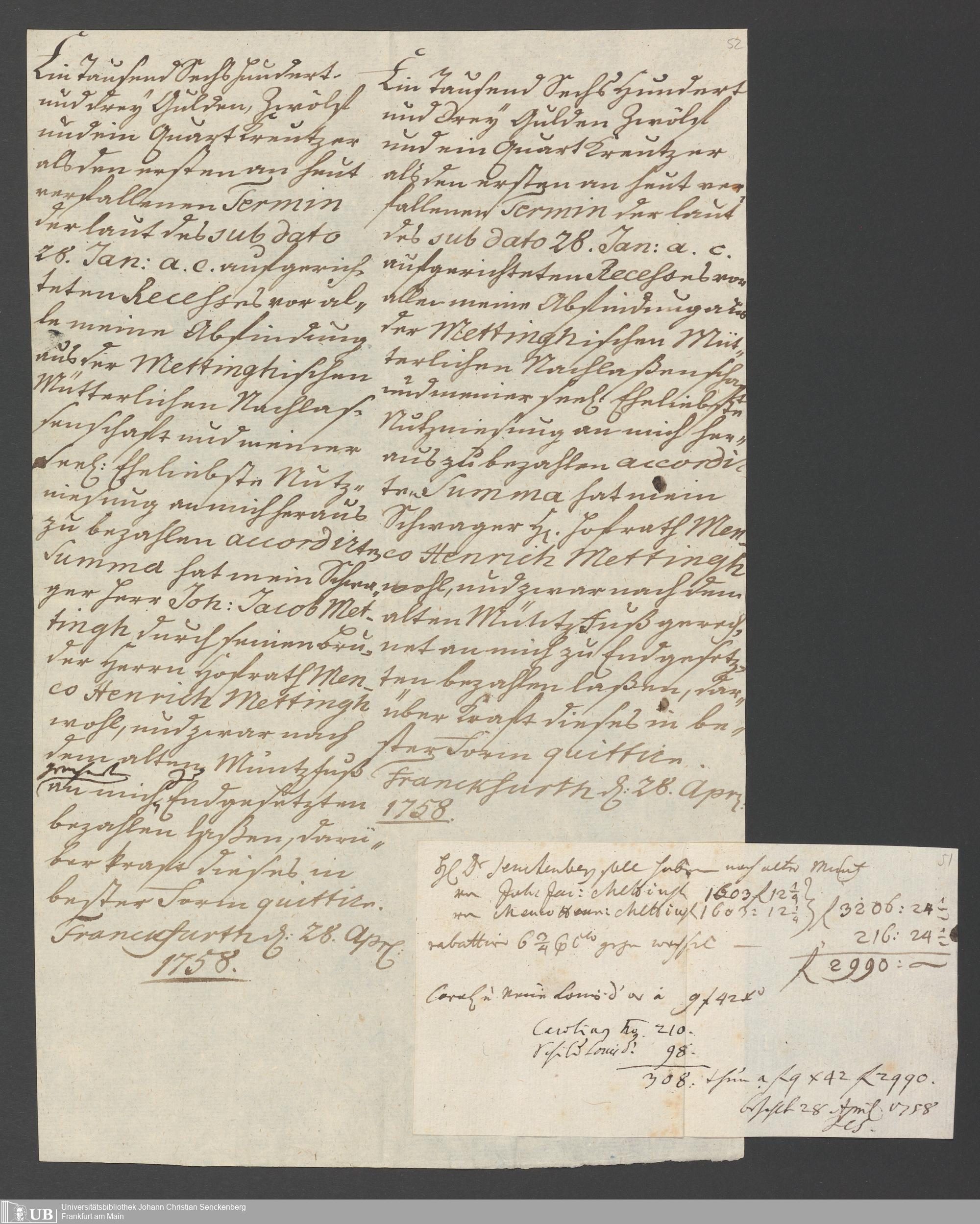 Na 31 Nachlass Johann Christian Senckenberg, 326 - Erbauseinandersetzung Mettingh IV