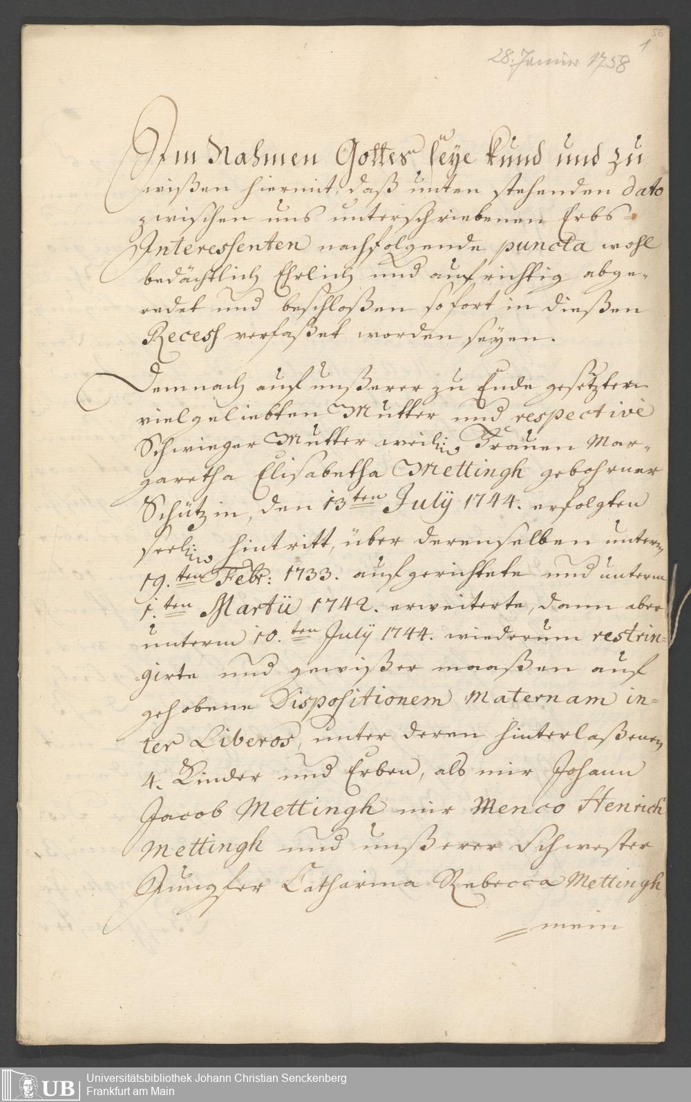 Na 31 Nachlass Johann Christian Senckenberg, 326 - Erbauseinandersetzung Mettingh IV