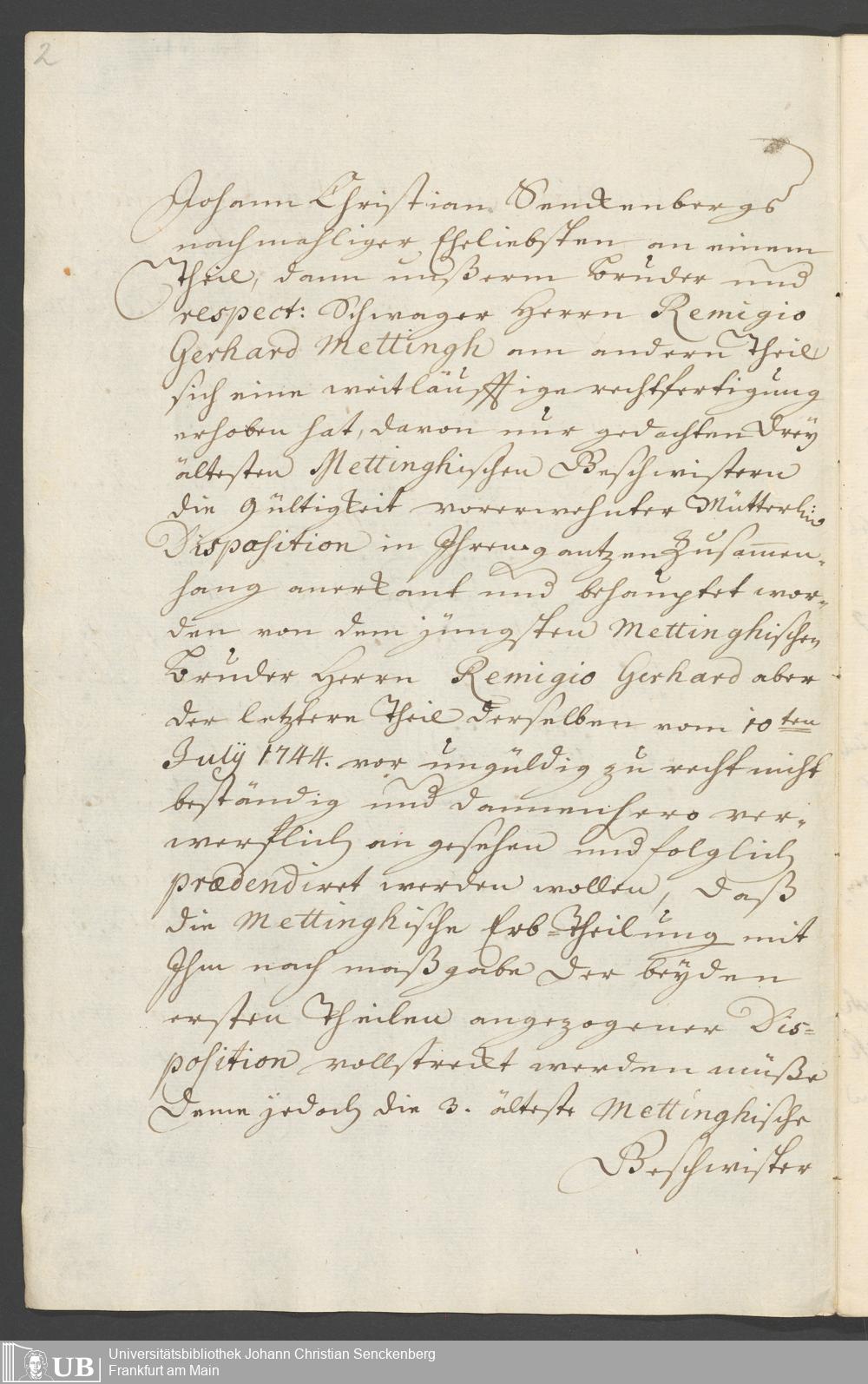 Na 31 Nachlass Johann Christian Senckenberg, 326 - Erbauseinandersetzung Mettingh IV