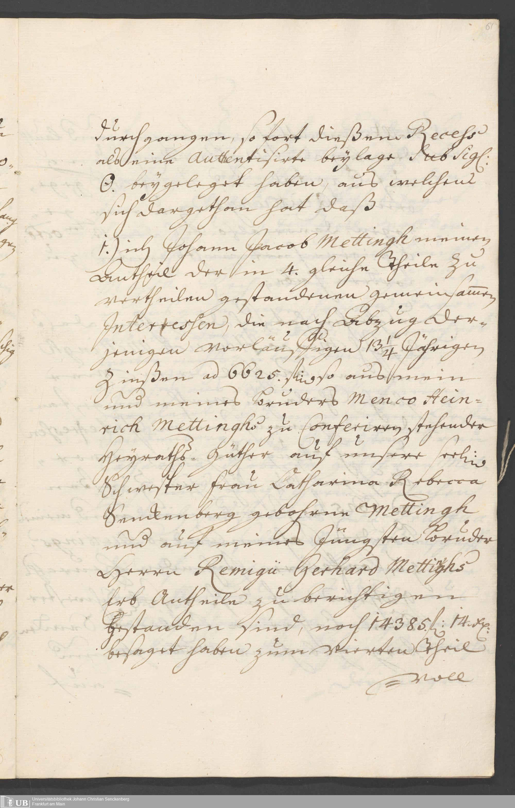 Na 31 Nachlass Johann Christian Senckenberg, 326 - Erbauseinandersetzung Mettingh IV