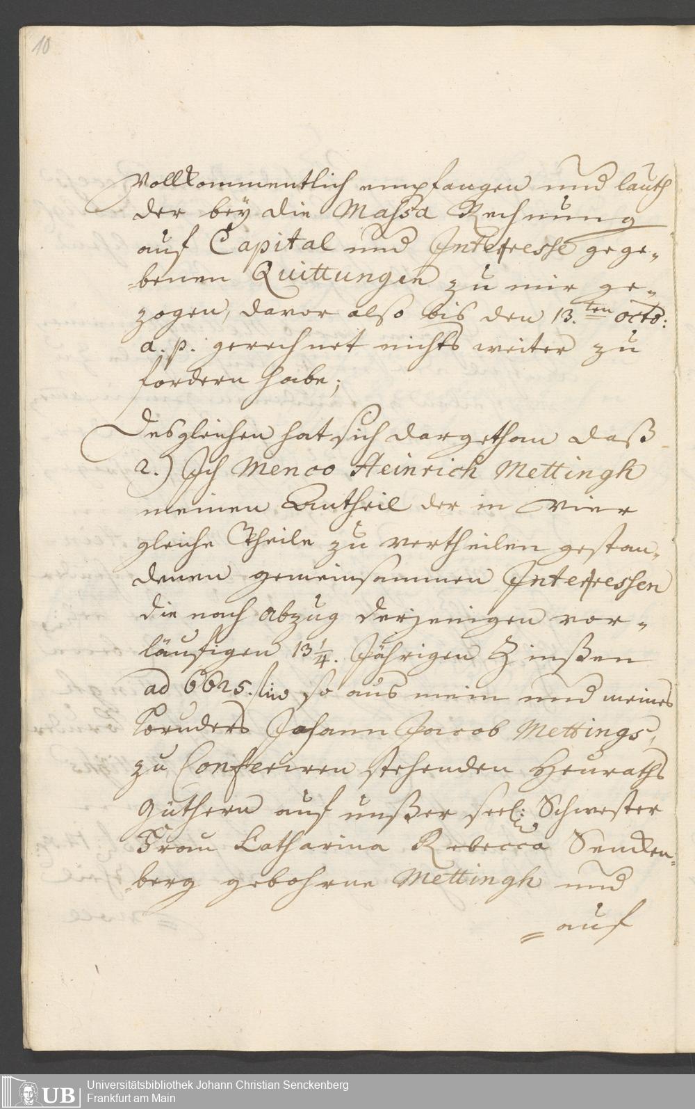 Na 31 Nachlass Johann Christian Senckenberg, 326 - Erbauseinandersetzung Mettingh IV
