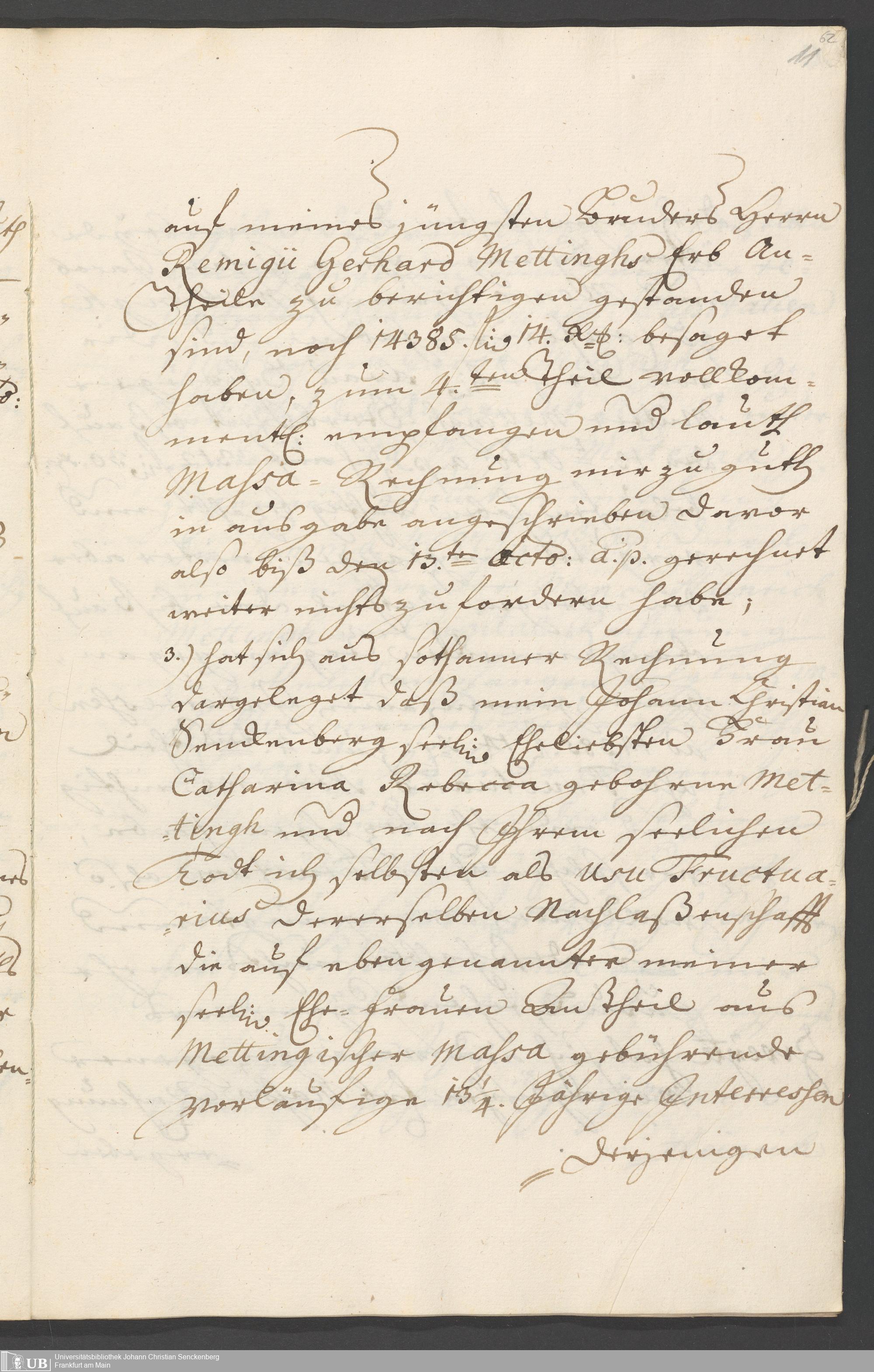 Na 31 Nachlass Johann Christian Senckenberg, 326 - Erbauseinandersetzung Mettingh IV