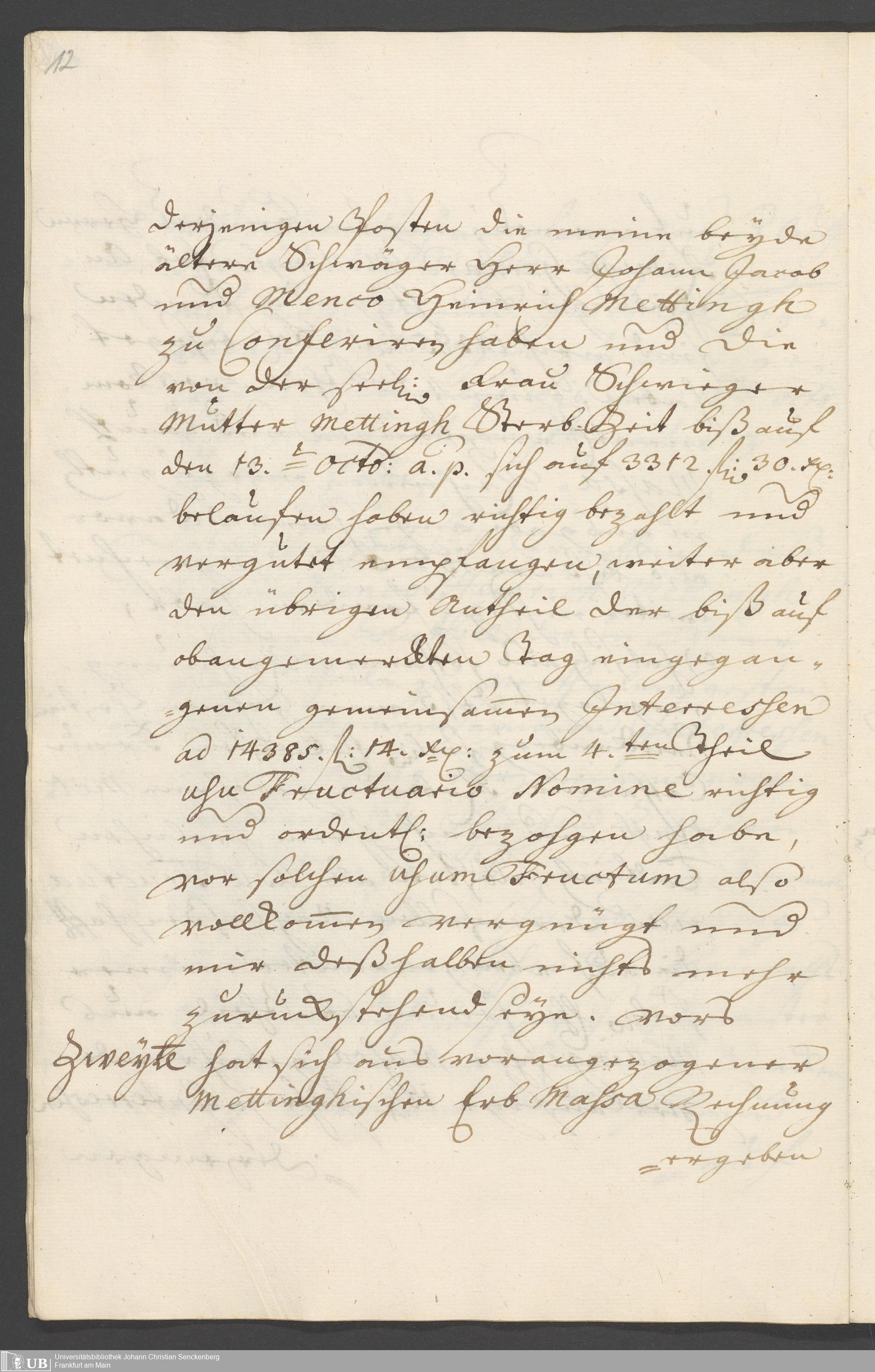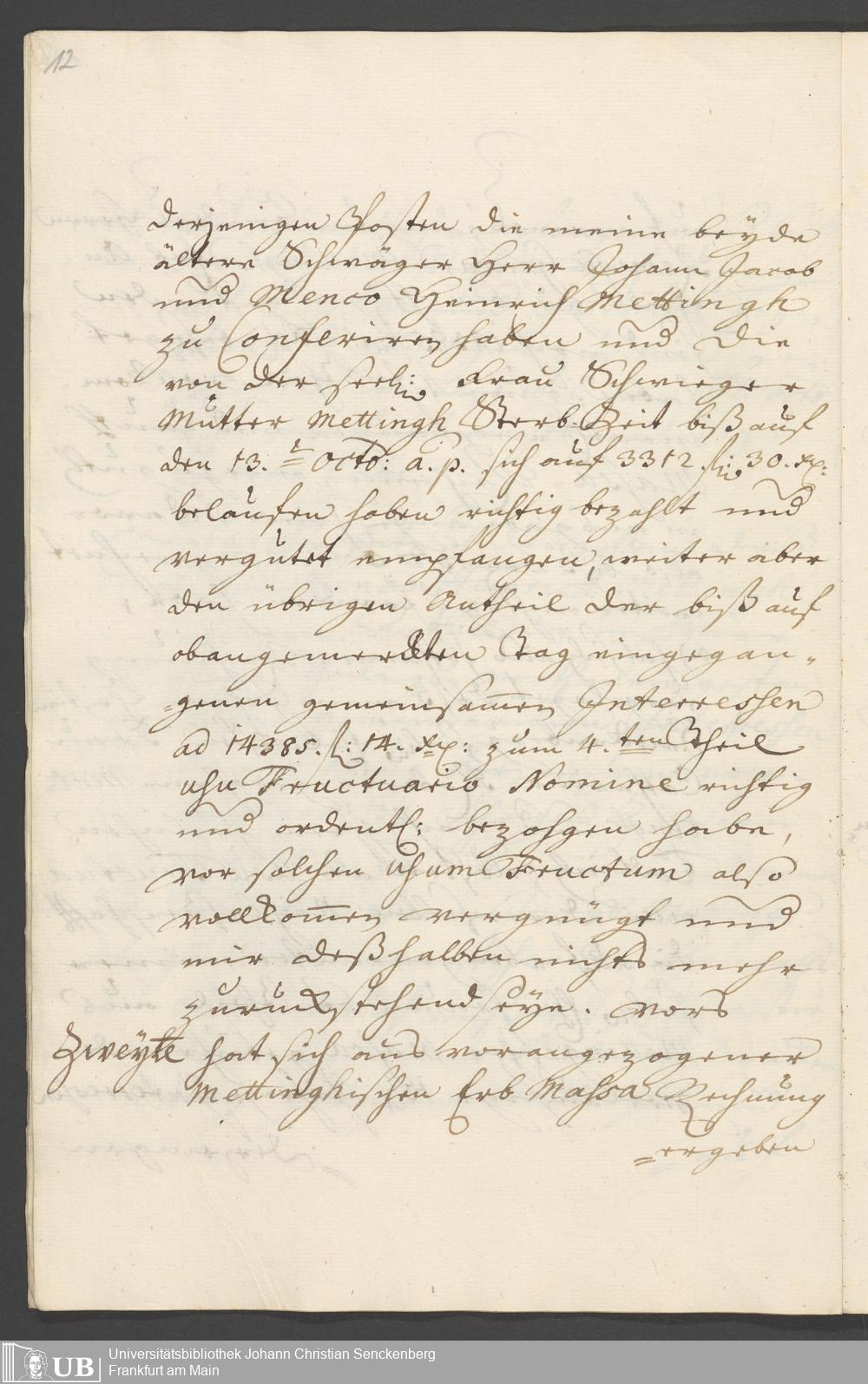 Na 31 Nachlass Johann Christian Senckenberg, 326 - Erbauseinandersetzung Mettingh IV
