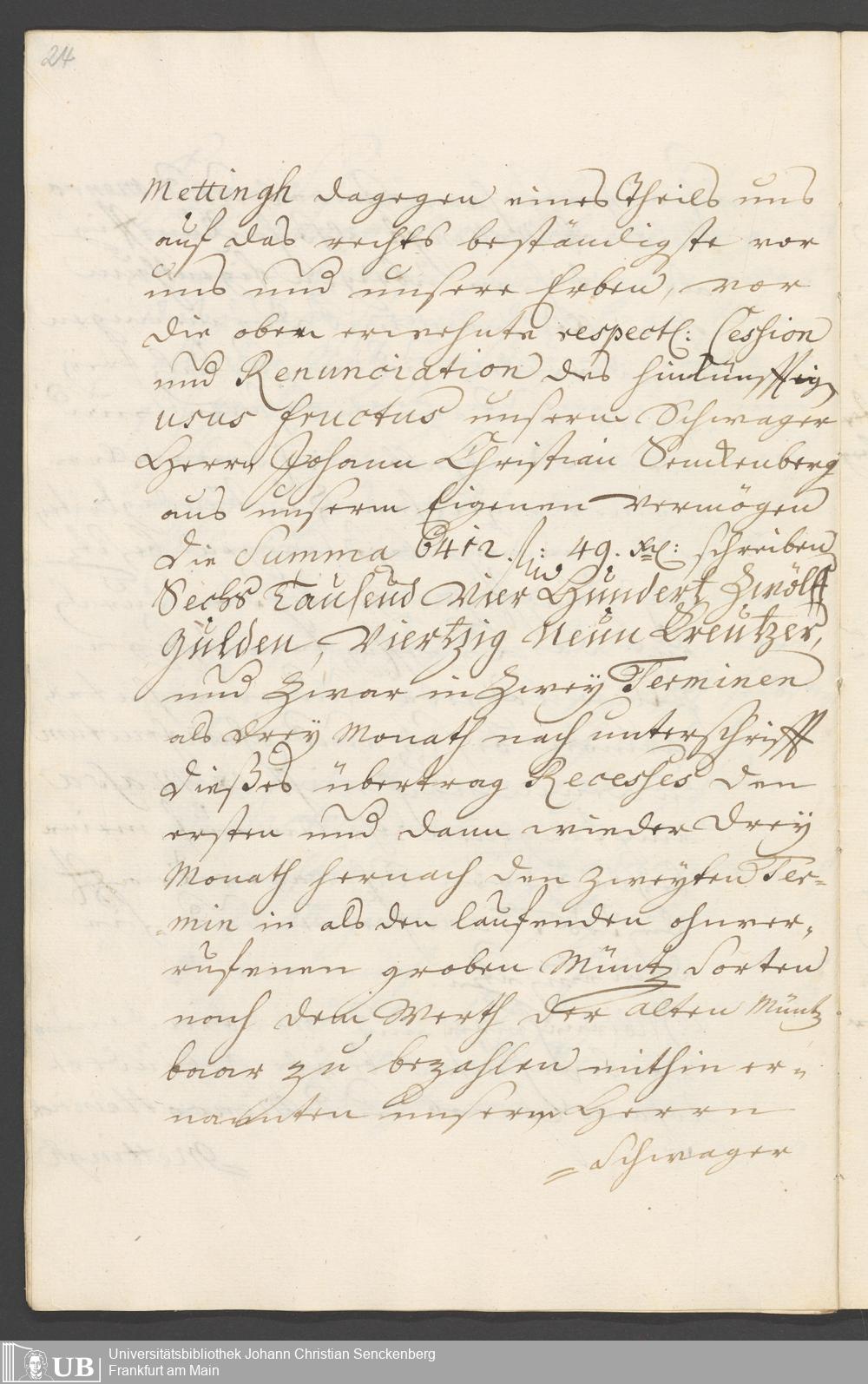 Na 31 Nachlass Johann Christian Senckenberg, 326 - Erbauseinandersetzung Mettingh IV