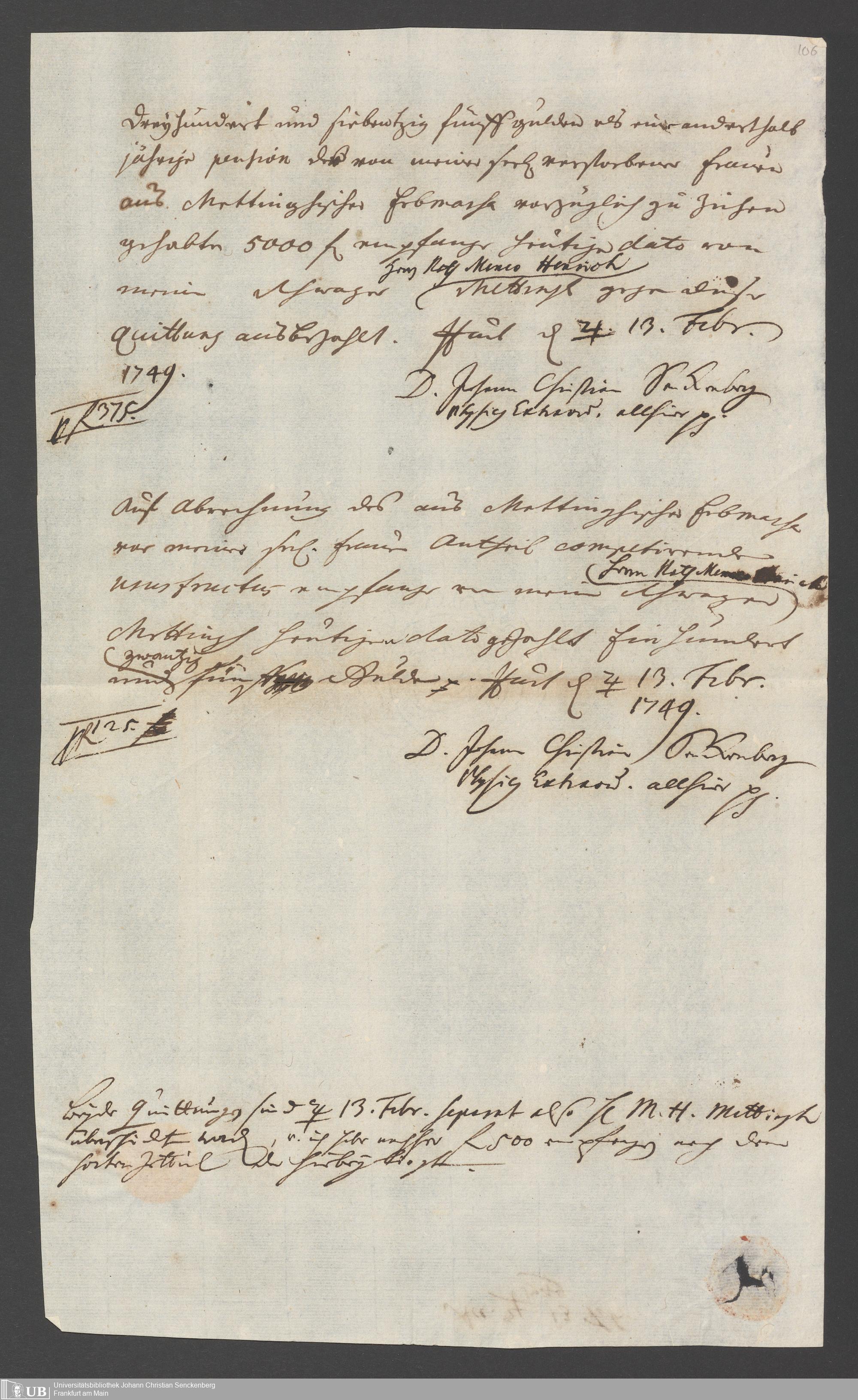 Na 31 Nachlass Johann Christian Senckenberg, 326 - Erbauseinandersetzung Mettingh IV