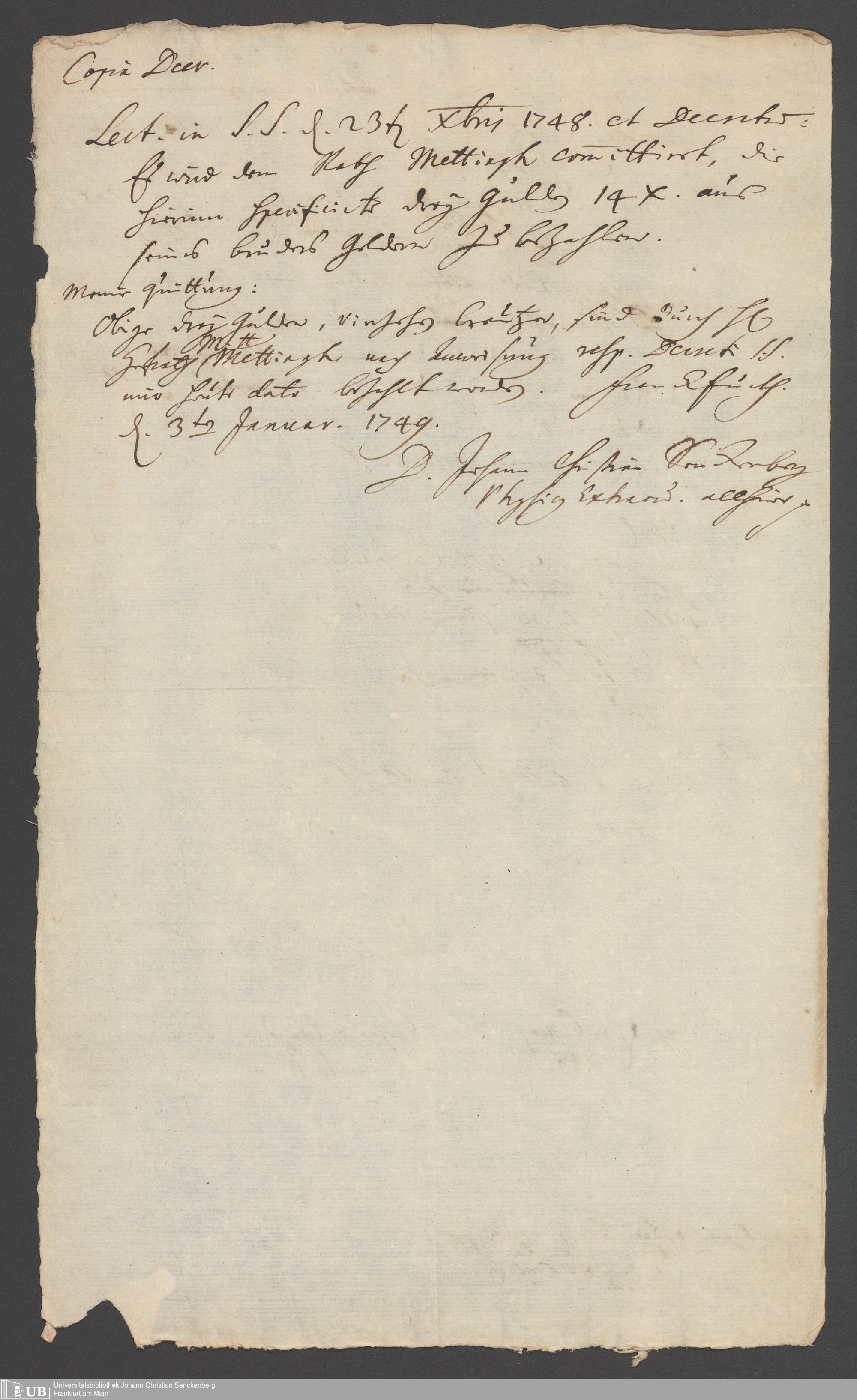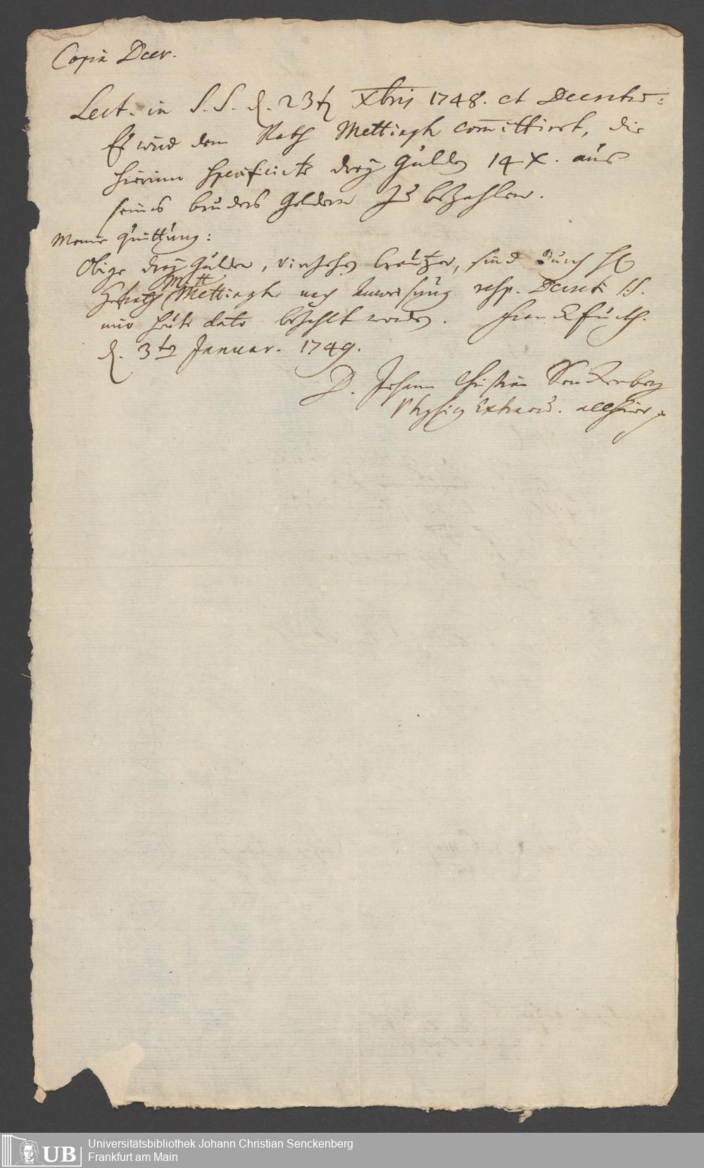 Na 31 Nachlass Johann Christian Senckenberg, 326 - Erbauseinandersetzung Mettingh IV