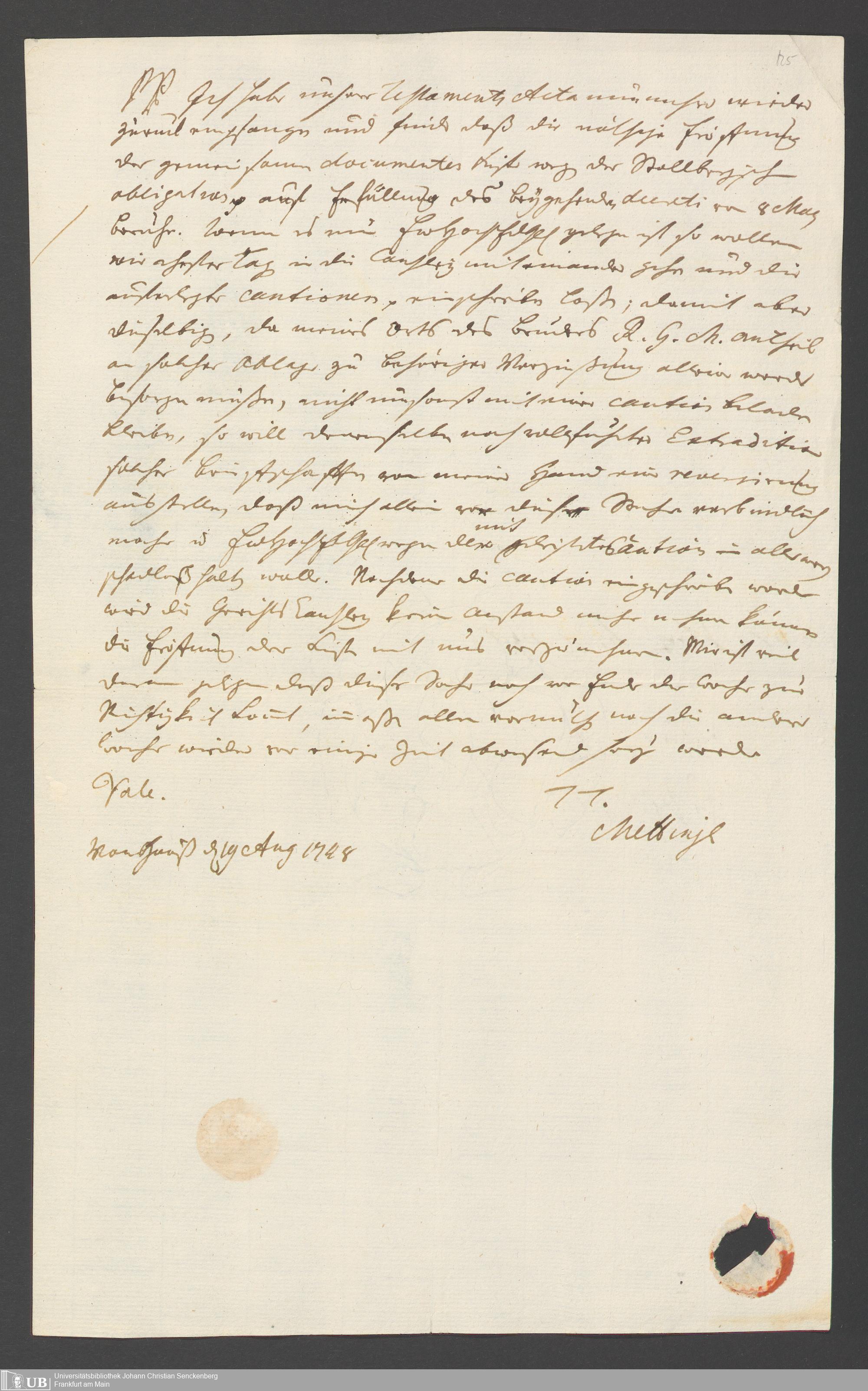 Na 31 Nachlass Johann Christian Senckenberg, 326 - Erbauseinandersetzung Mettingh IV