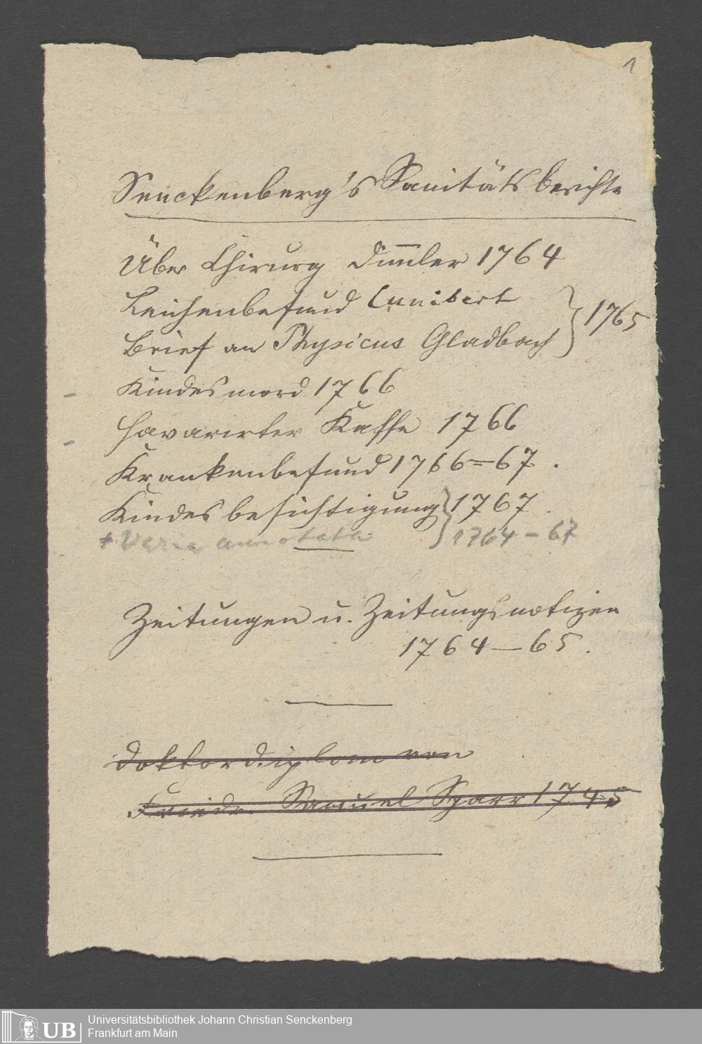 Na 31 Nachlass Johann Christian Senckenberg, 264 - Notizen und Akten aus der Physikatstätigkeit
