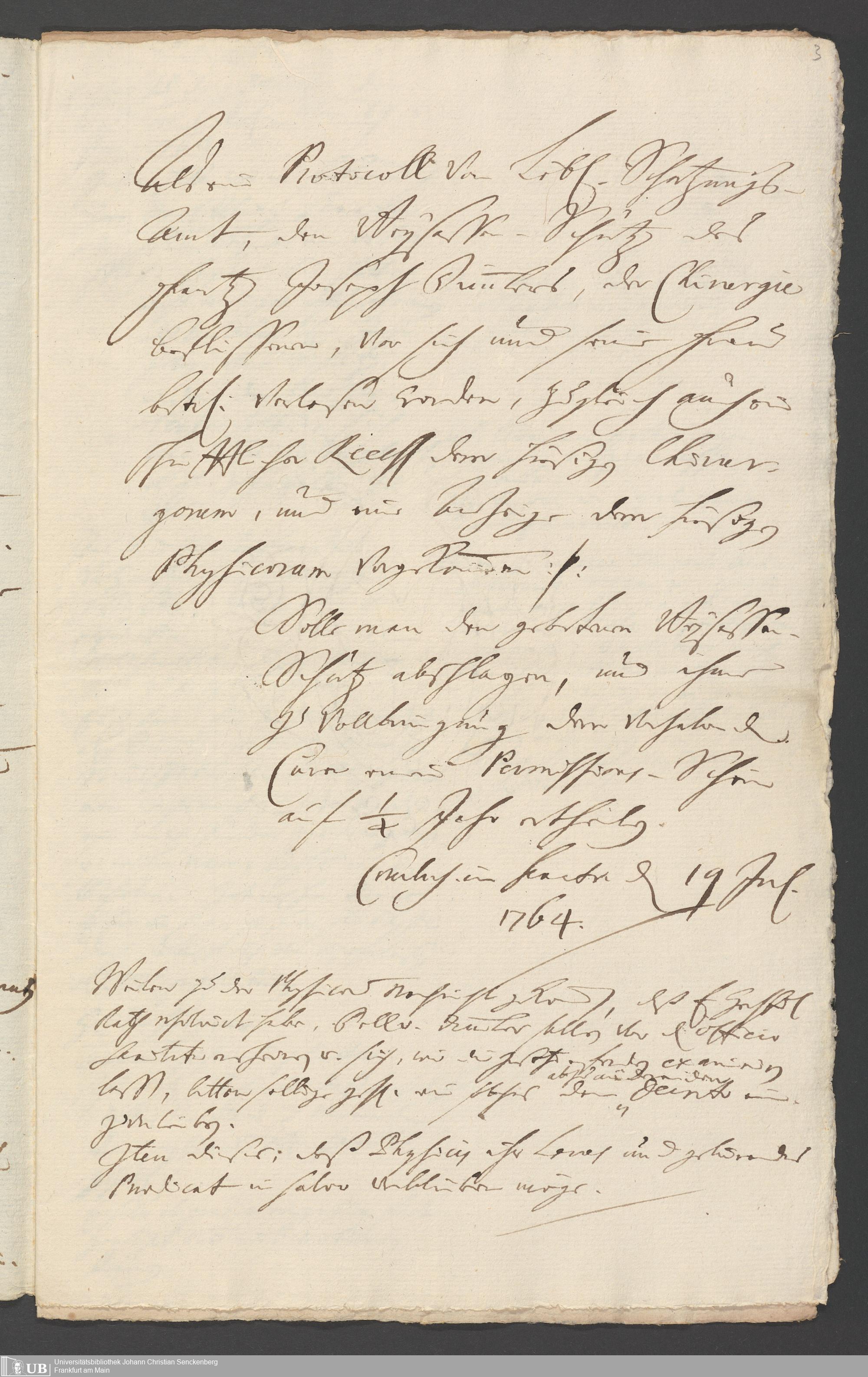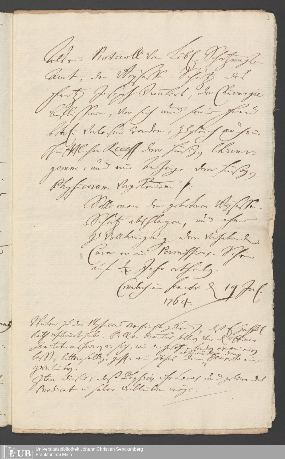Na 31 Nachlass Johann Christian Senckenberg, 264 - Notizen und Akten aus der Physikatstätigkeit
