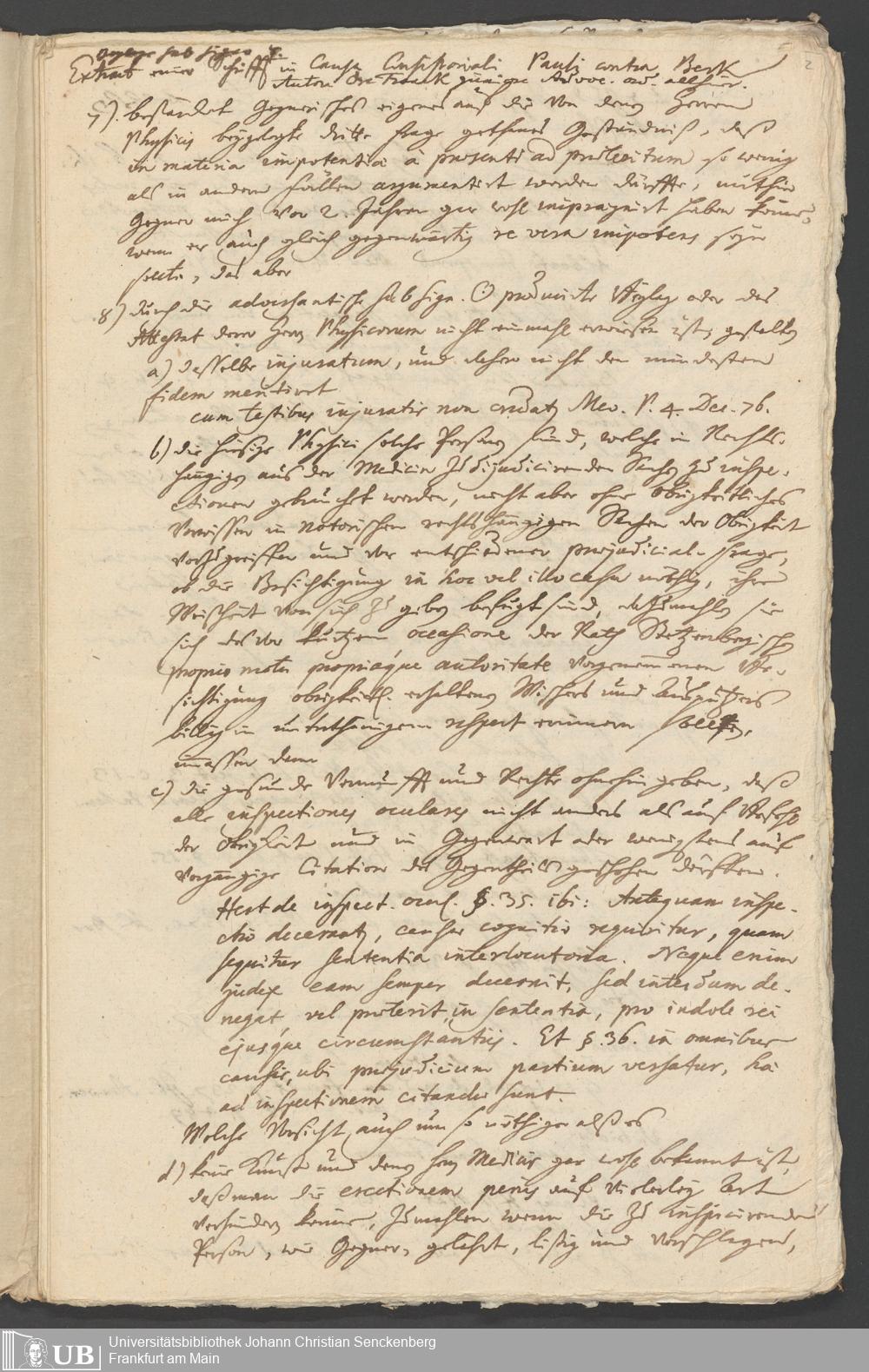 Na 31 Nachlass Johann Christian Senckenberg, 267 - Physikatsberichte und Gutachten