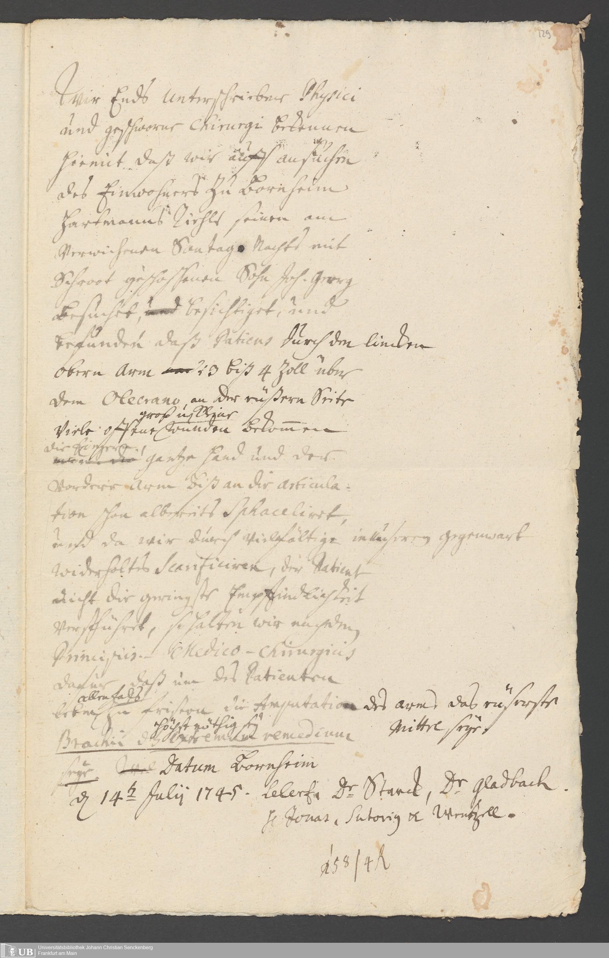 Na 31 Nachlass Johann Christian Senckenberg, 267 - Physikatsberichte und Gutachten