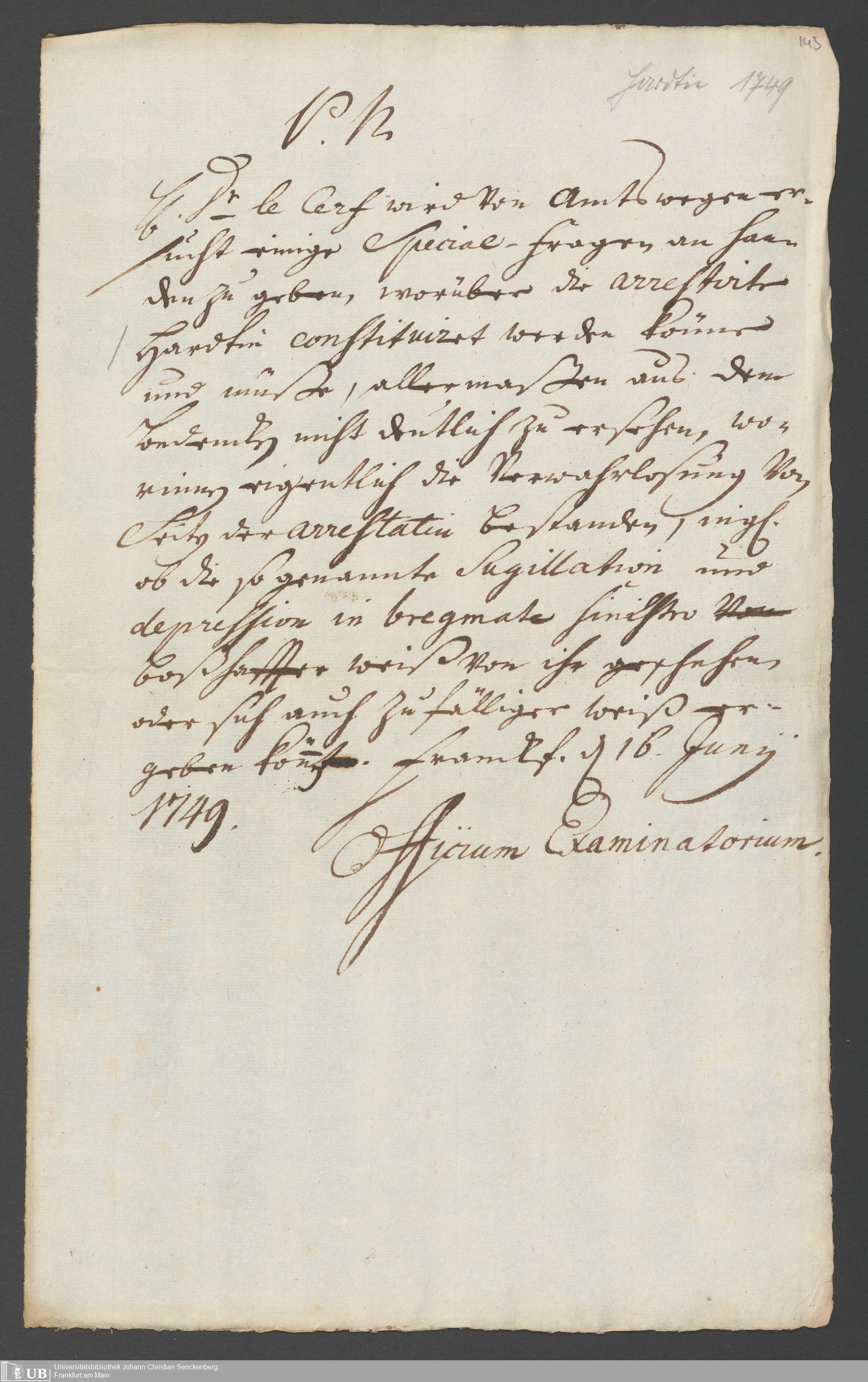 Na 31 Nachlass Johann Christian Senckenberg, 267 - Physikatsberichte und Gutachten