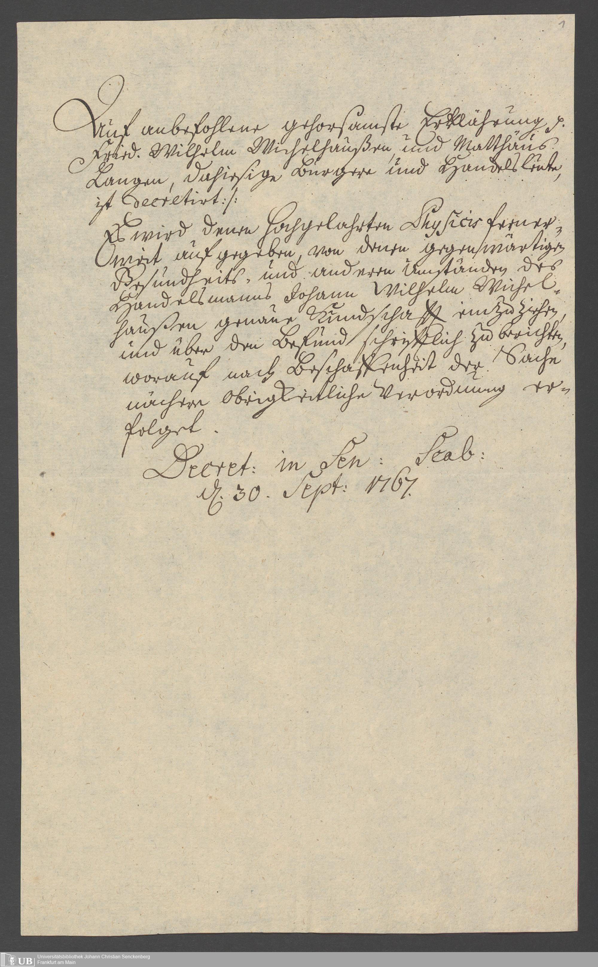 Na 31 Nachlass Johann Christian Senckenberg, 269 - Notizen zu Berichten und zum Physikat