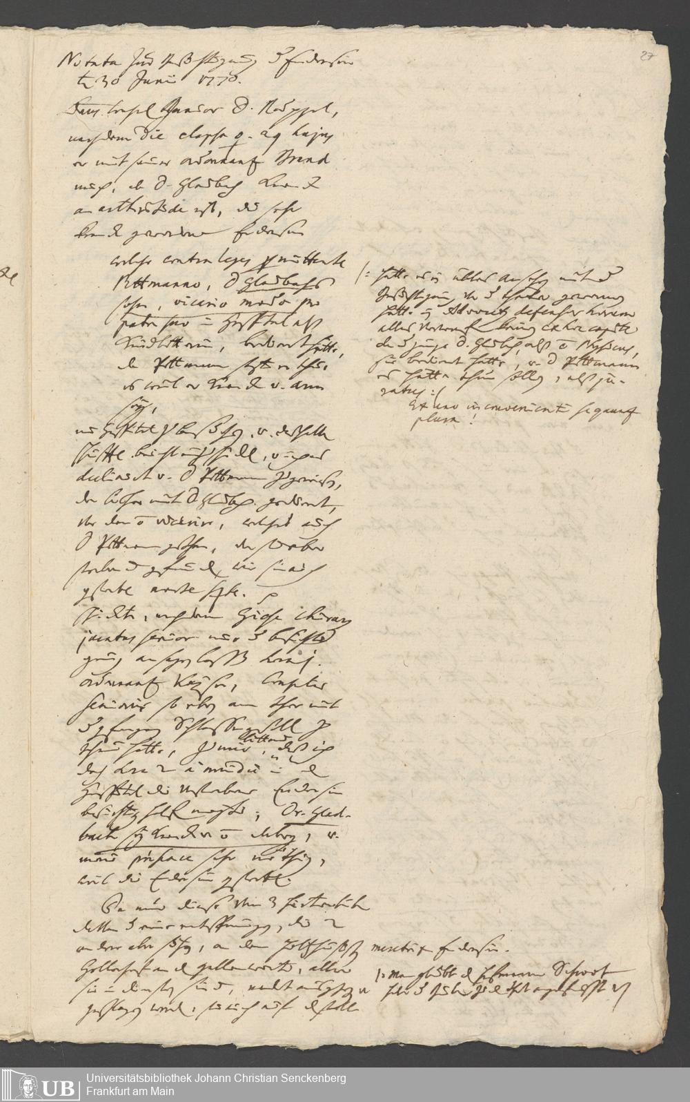 Na 31 Nachlass Johann Christian Senckenberg, 269 - Notizen zu Berichten und zum Physikat