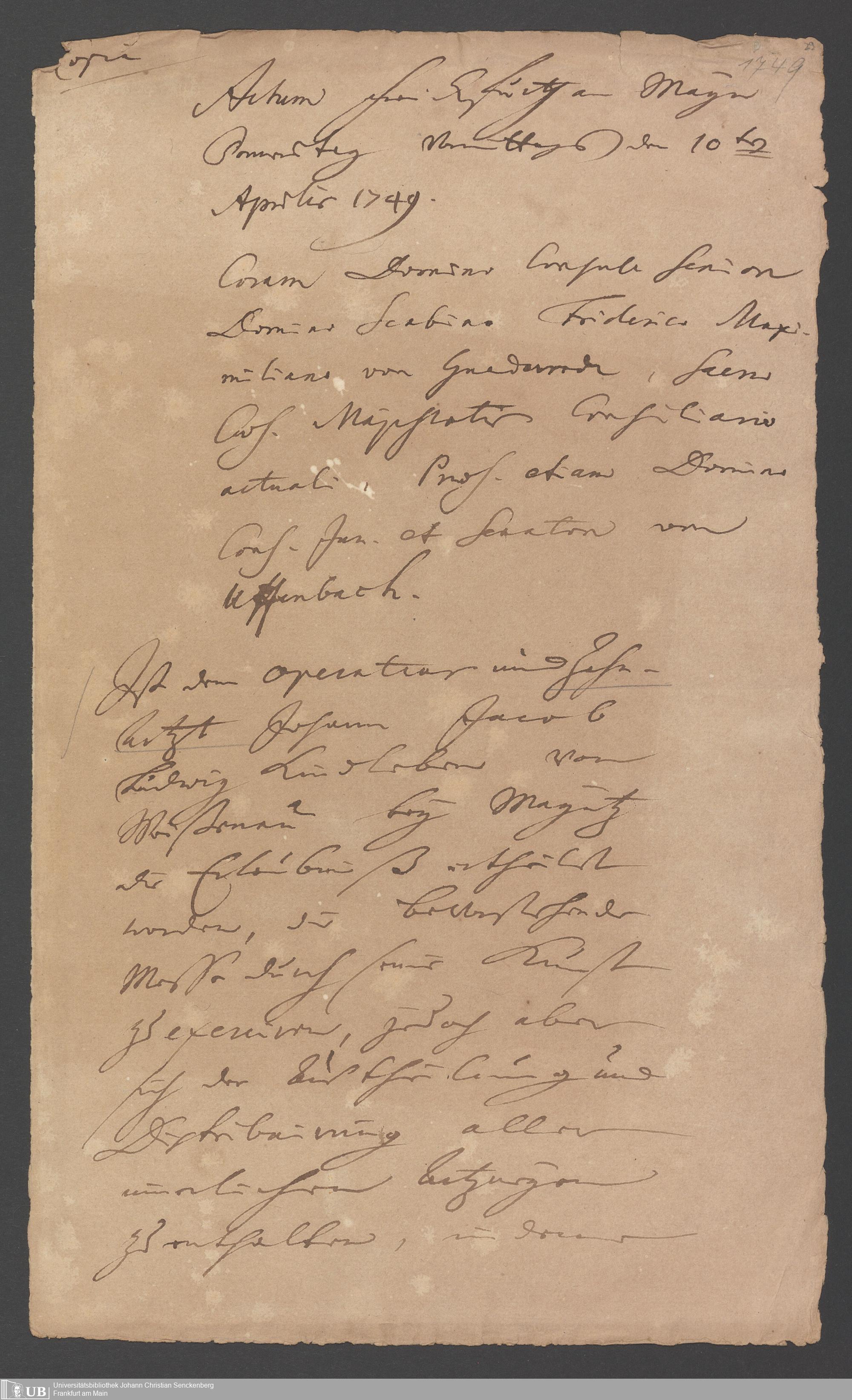 Na 31 Nachlass Johann Christian Senckenberg, 282 - Notizen Johann Christian Senckenbergs zum Physikat