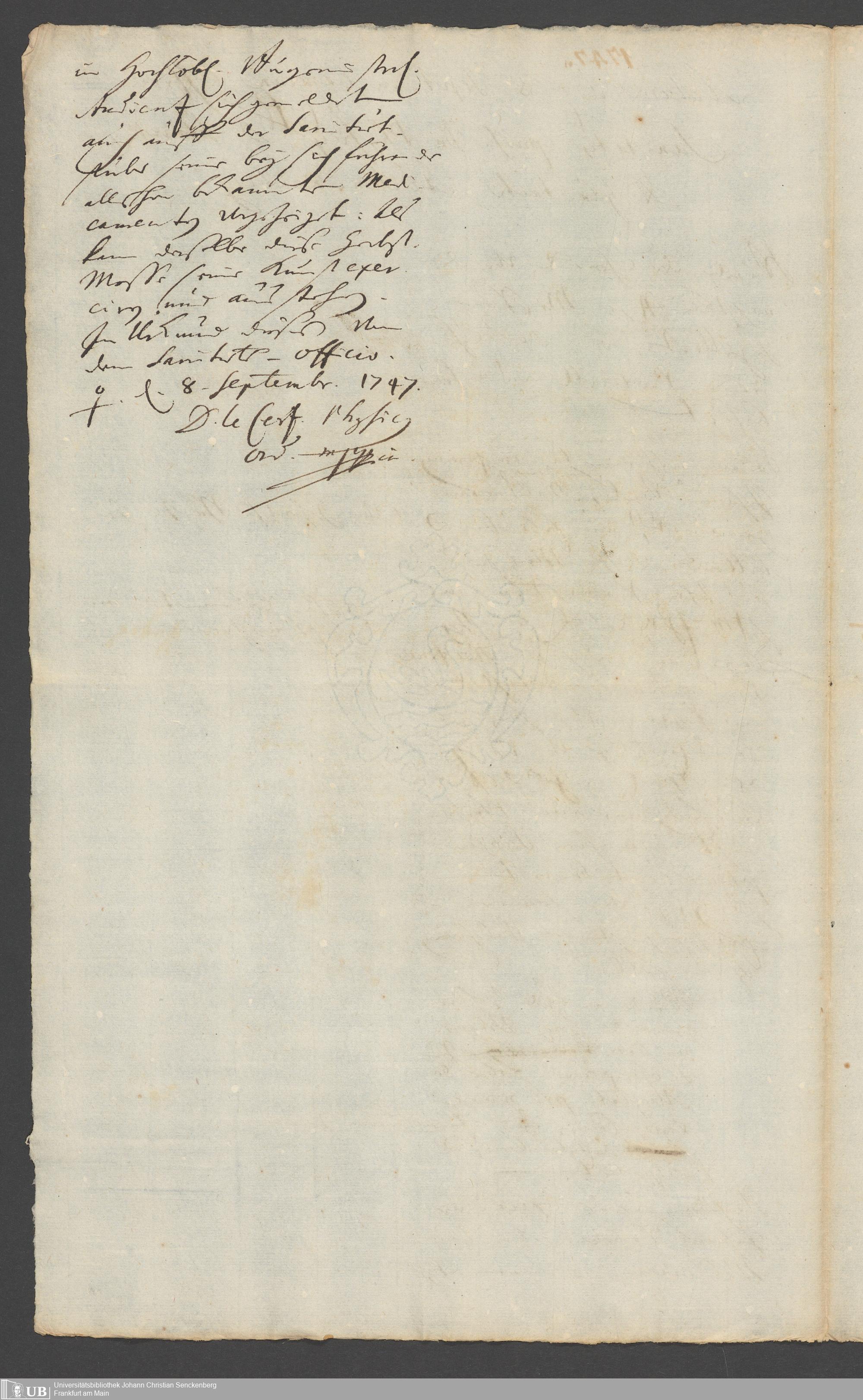 Na 31 Nachlass Johann Christian Senckenberg, 284 - Aufzeichnungen und Protokolle des Sanitätsamtes