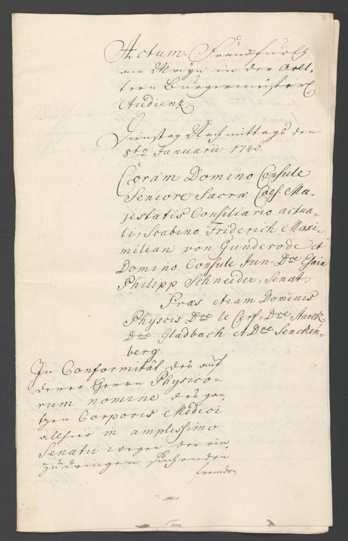 Na 31 Nachlass Johann Christian Senckenberg, 284 - Aufzeichnungen und Protokolle des Sanitätsamtes