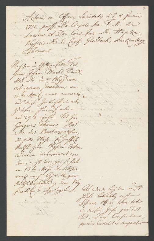 Na 31 Nachlass Johann Christian Senckenberg, 284 - Aufzeichnungen und Protokolle des Sanitätsamtes