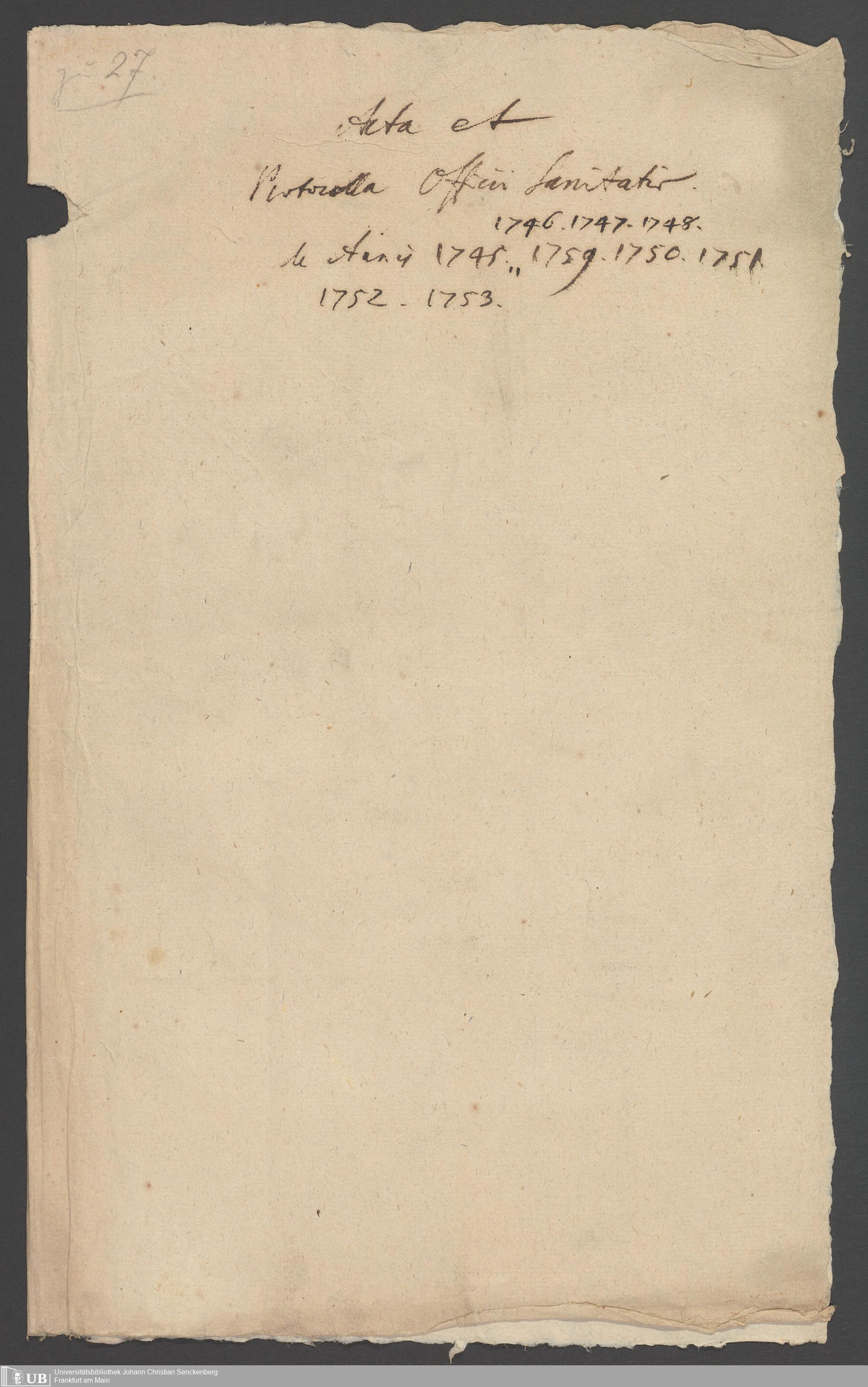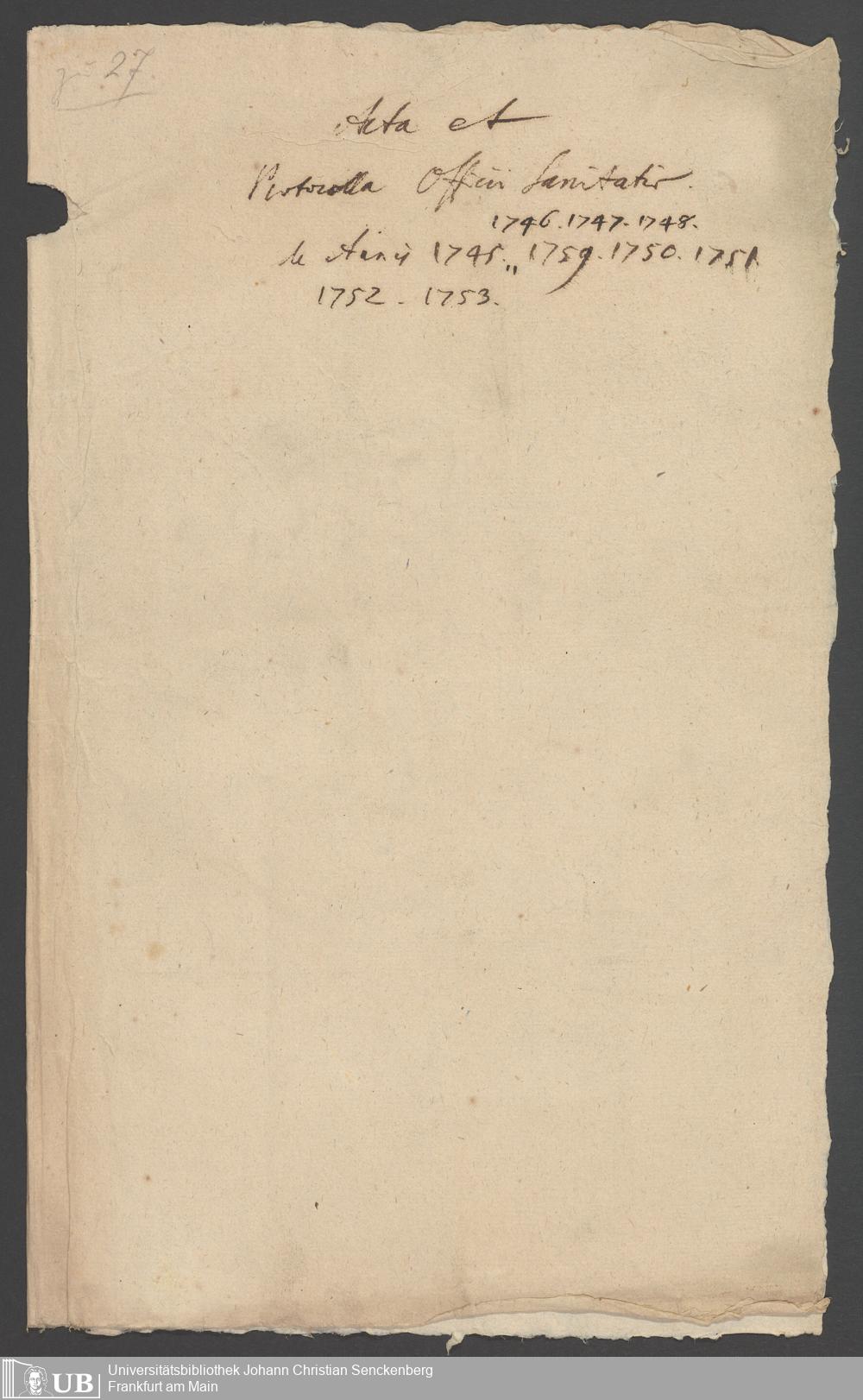 Na 31 Nachlass Johann Christian Senckenberg, 284 - Aufzeichnungen und Protokolle des Sanitätsamtes