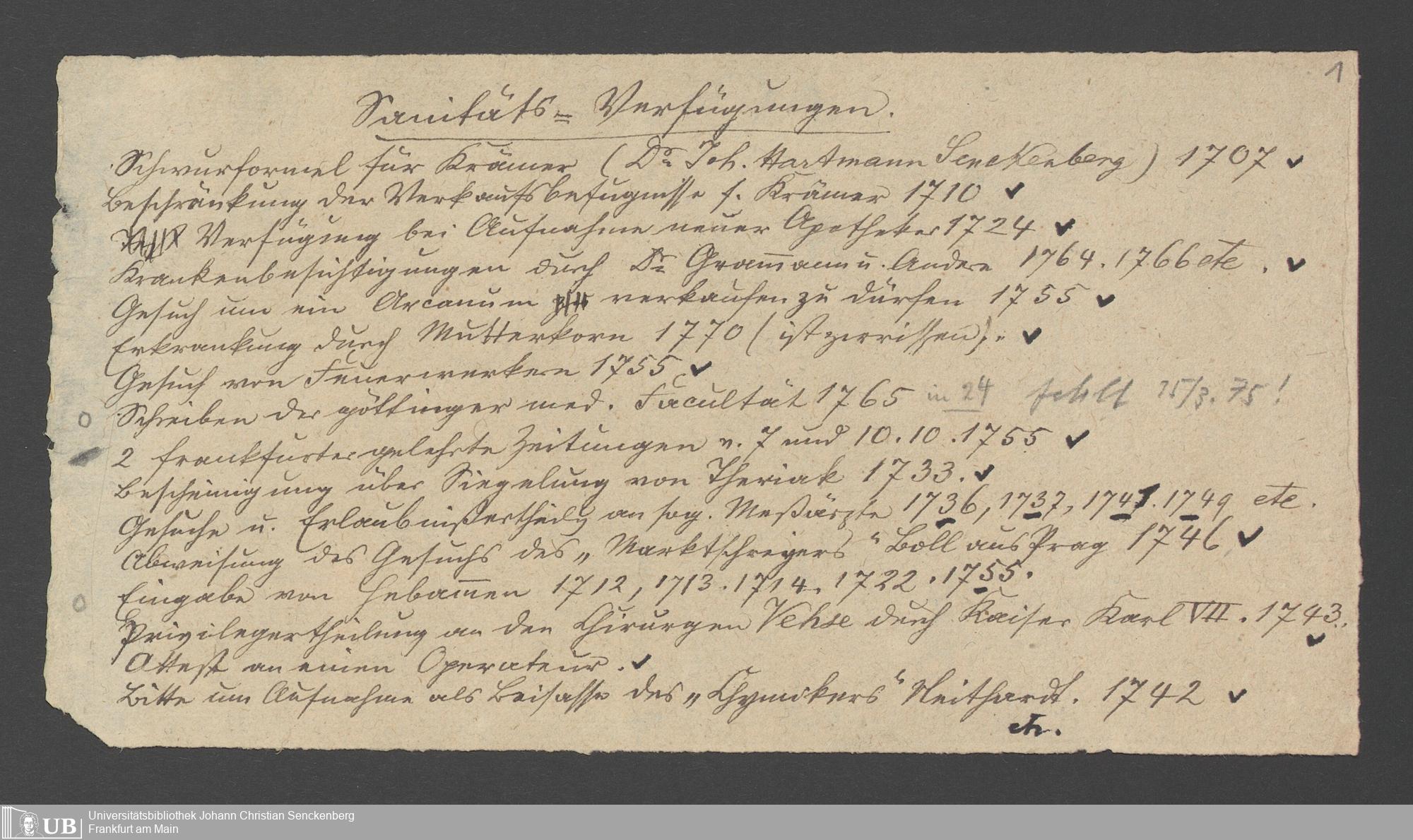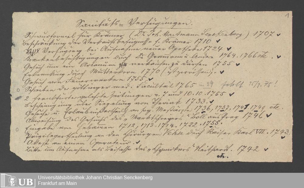 Nachlass Johann Christian Senckenberg