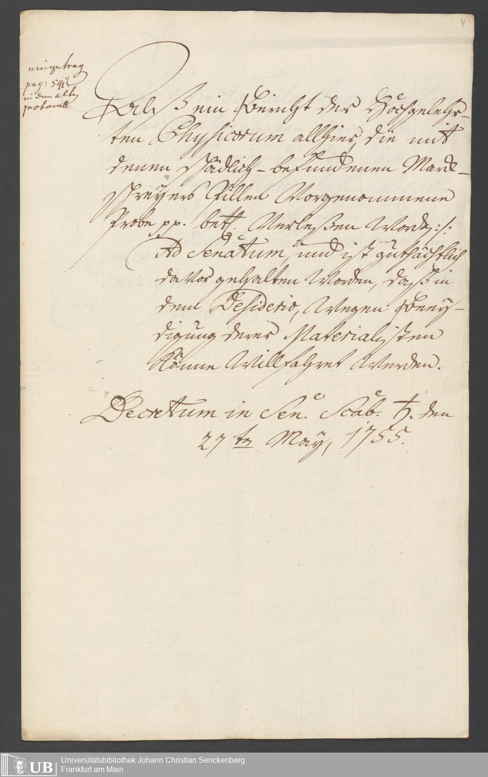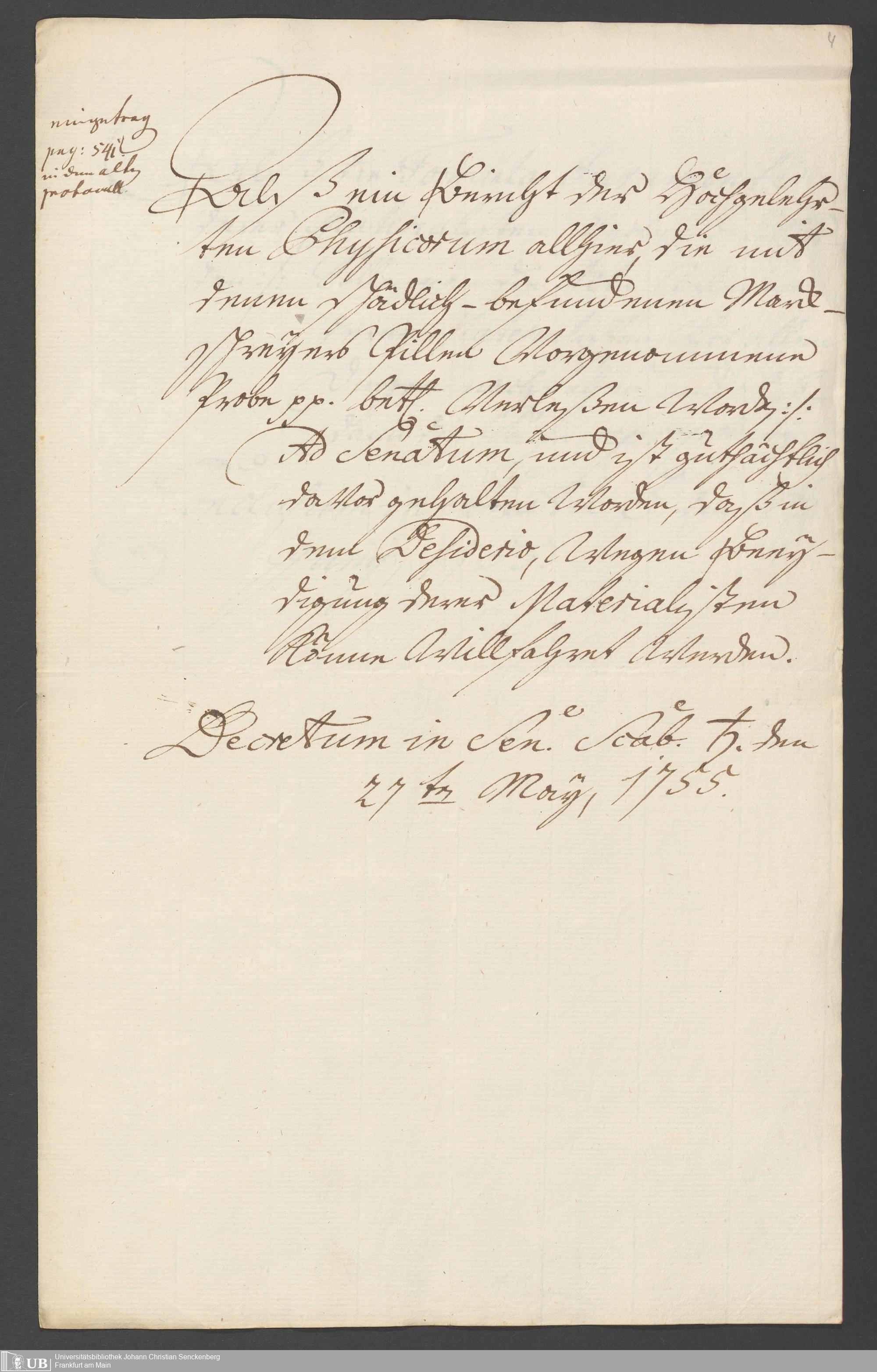Na 31 Nachlass Johann Christian Senckenberg, 286 - Verfügungen des Sanitätsamtes