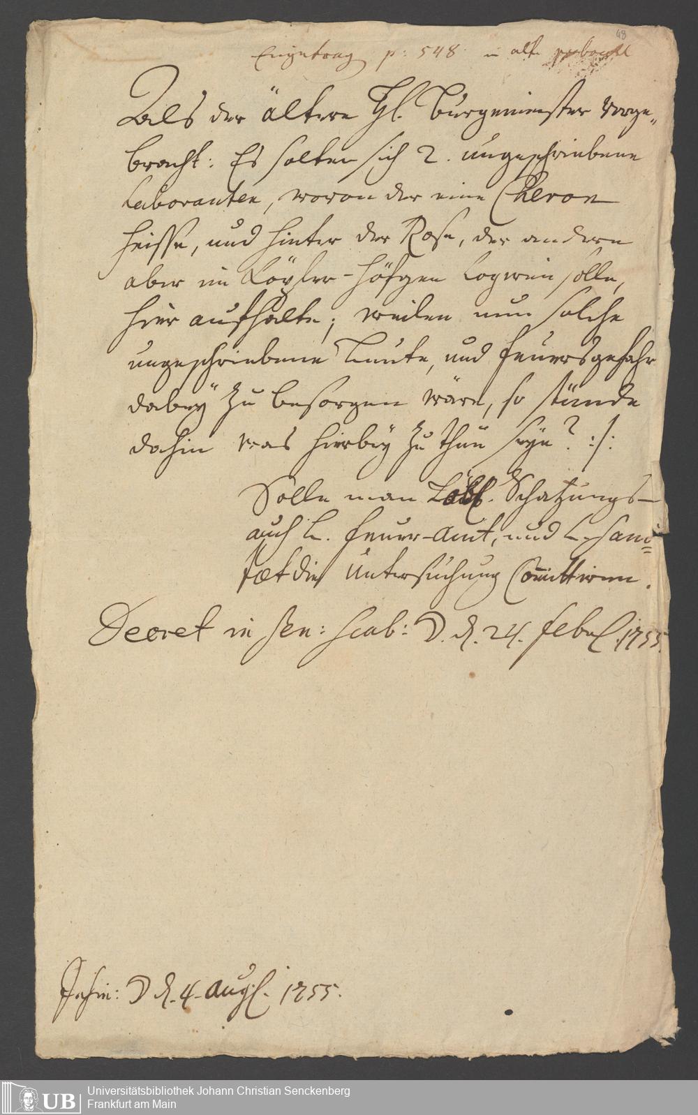 Na 31 Nachlass Johann Christian Senckenberg, 286 - Verfügungen des Sanitätsamtes