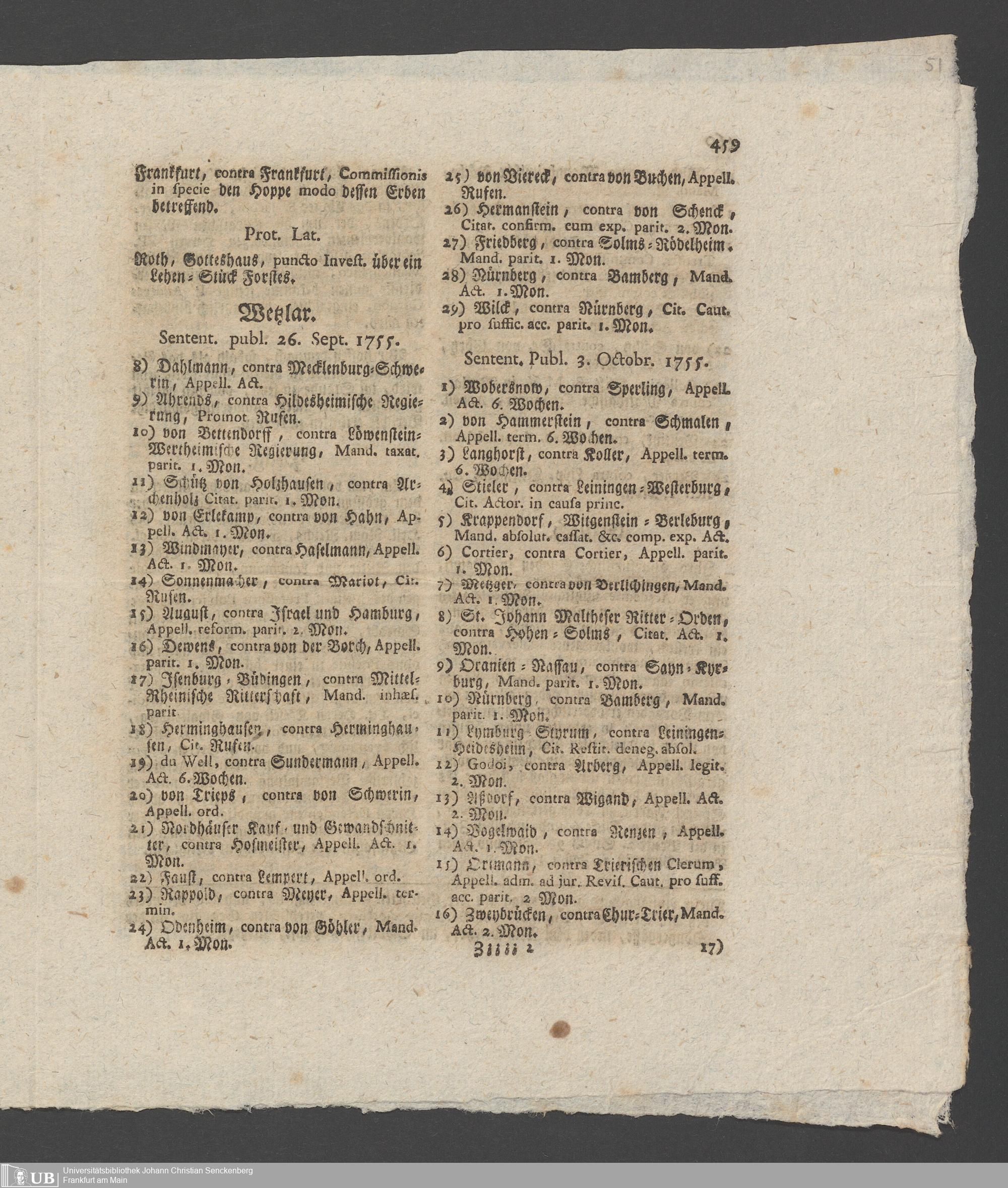 Na 31 Nachlass Johann Christian Senckenberg, 286 - Verfügungen des Sanitätsamtes