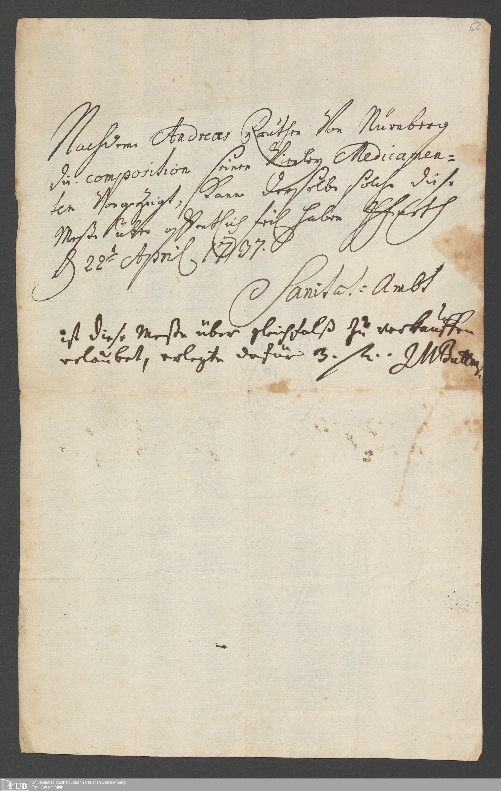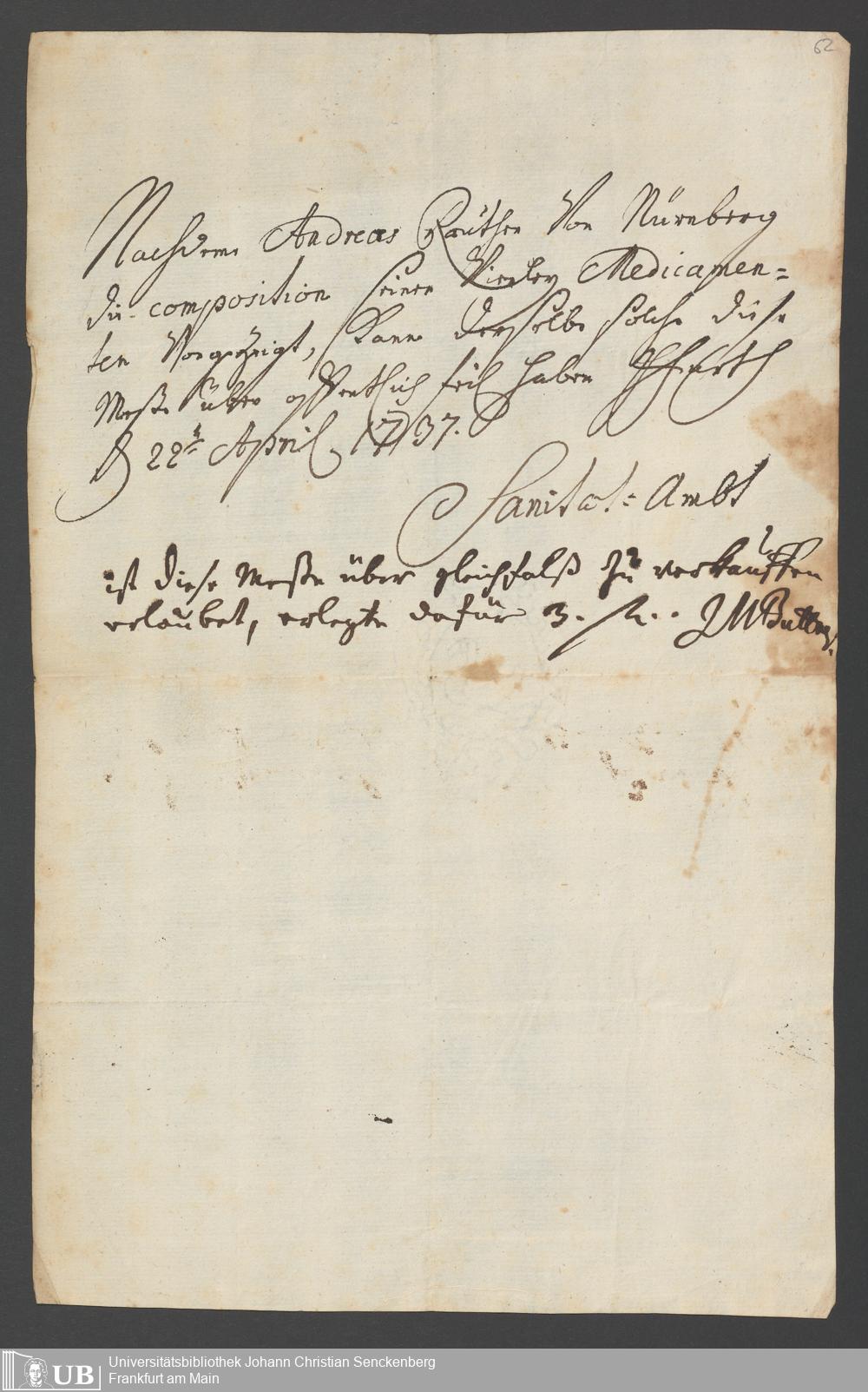 Na 31 Nachlass Johann Christian Senckenberg, 286 - Verfügungen des Sanitätsamtes