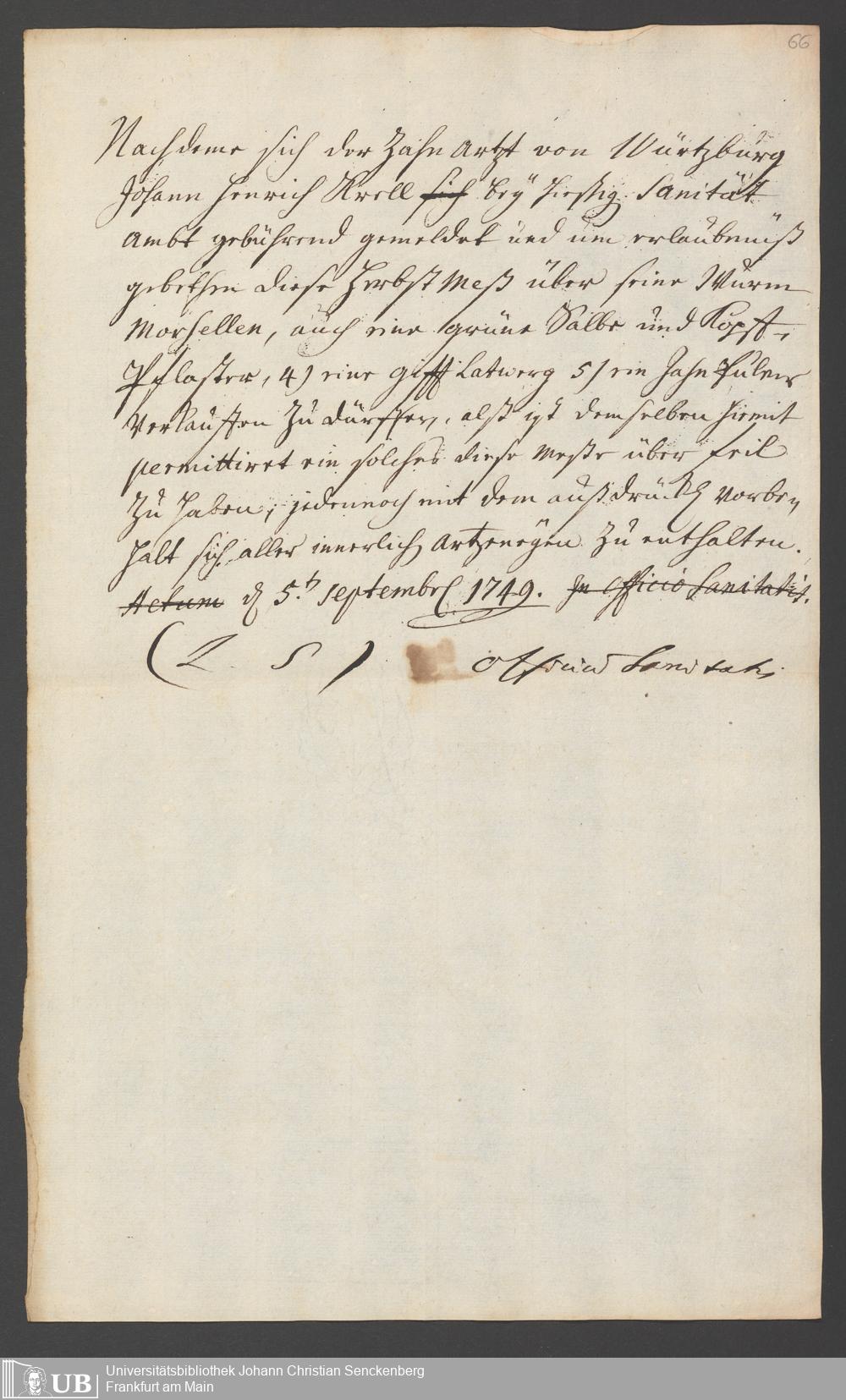 Na 31 Nachlass Johann Christian Senckenberg, 286 - Verfügungen des Sanitätsamtes