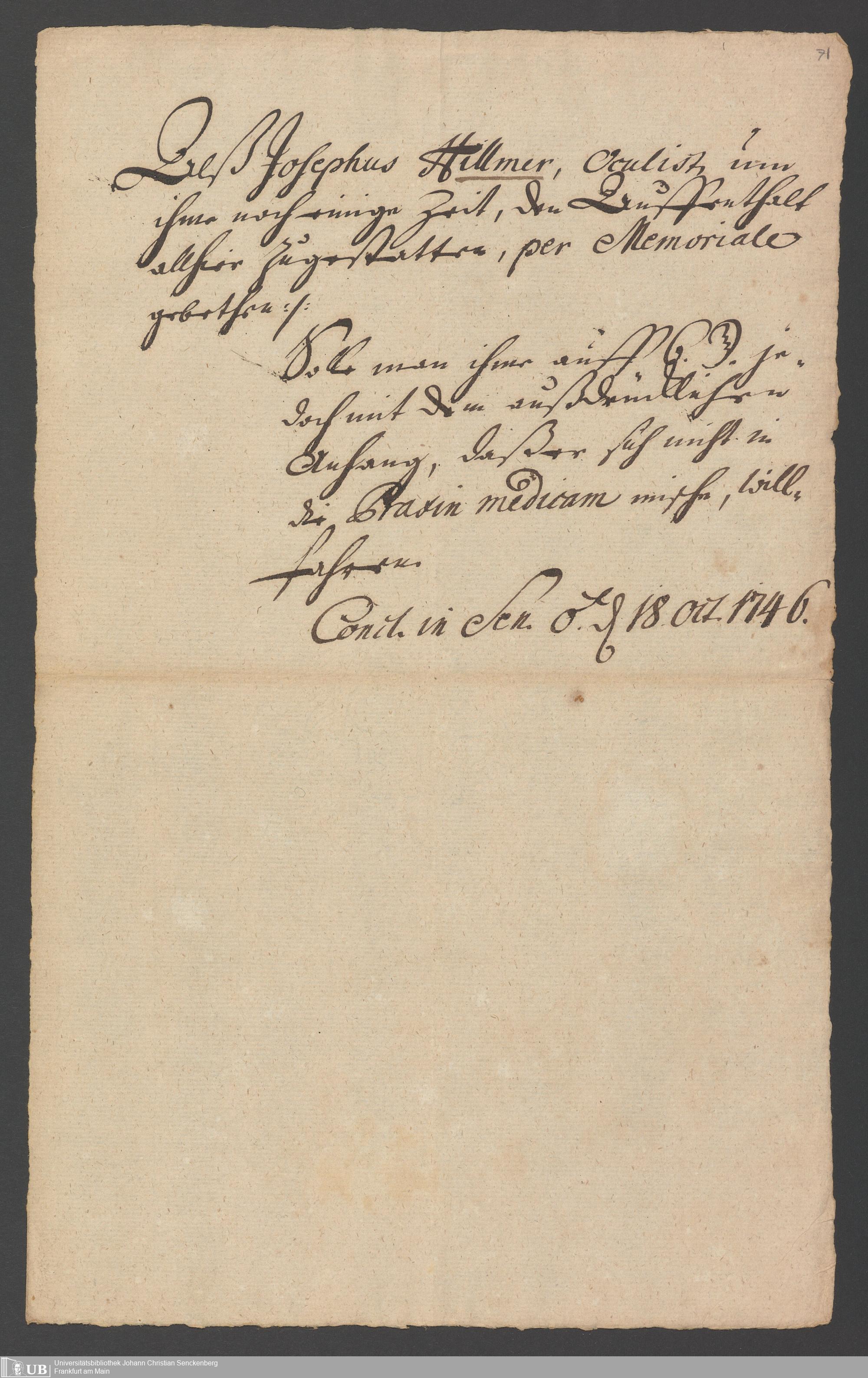 Na 31 Nachlass Johann Christian Senckenberg, 286 - Verfügungen des Sanitätsamtes