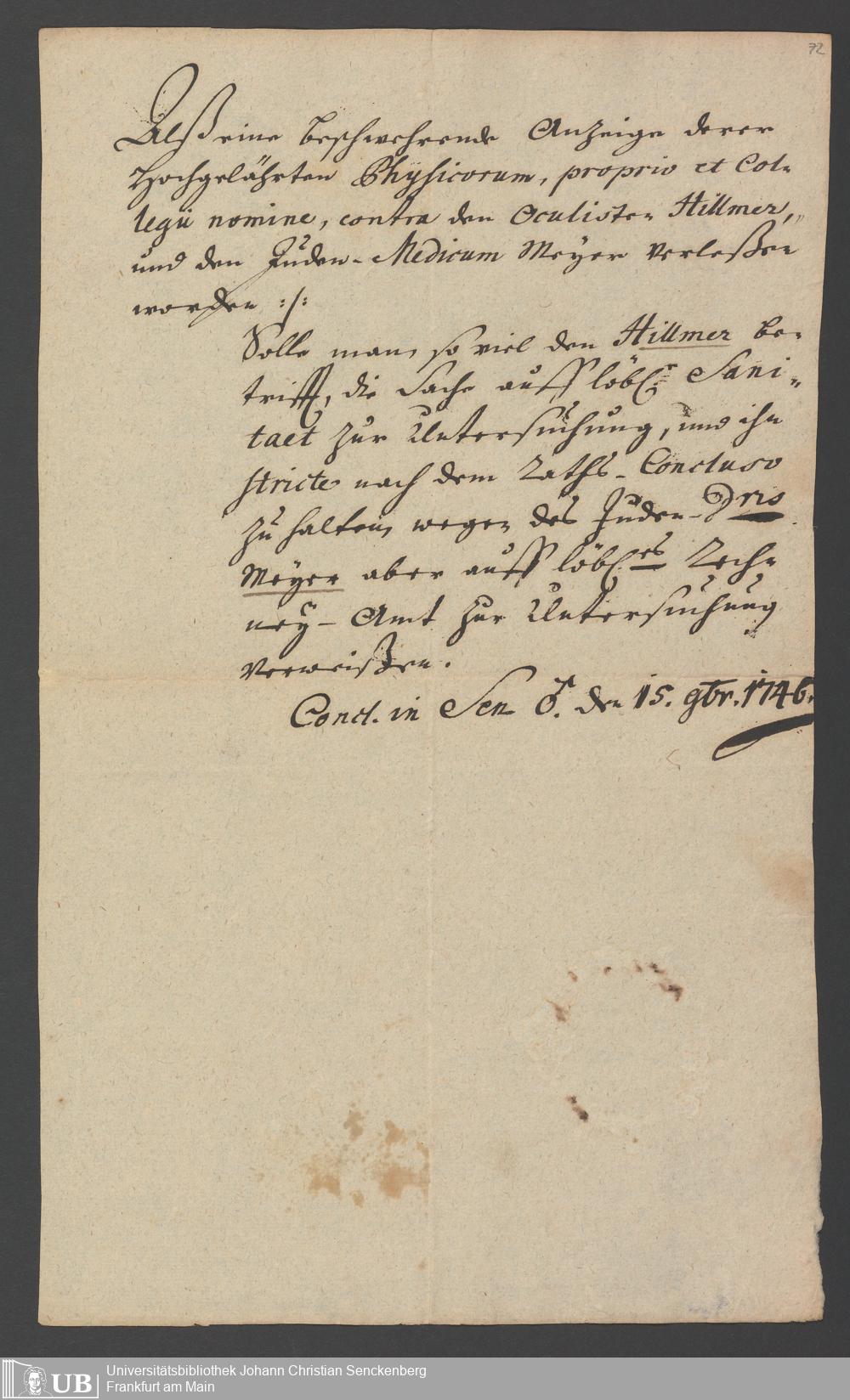 Na 31 Nachlass Johann Christian Senckenberg, 286 - Verfügungen des Sanitätsamtes