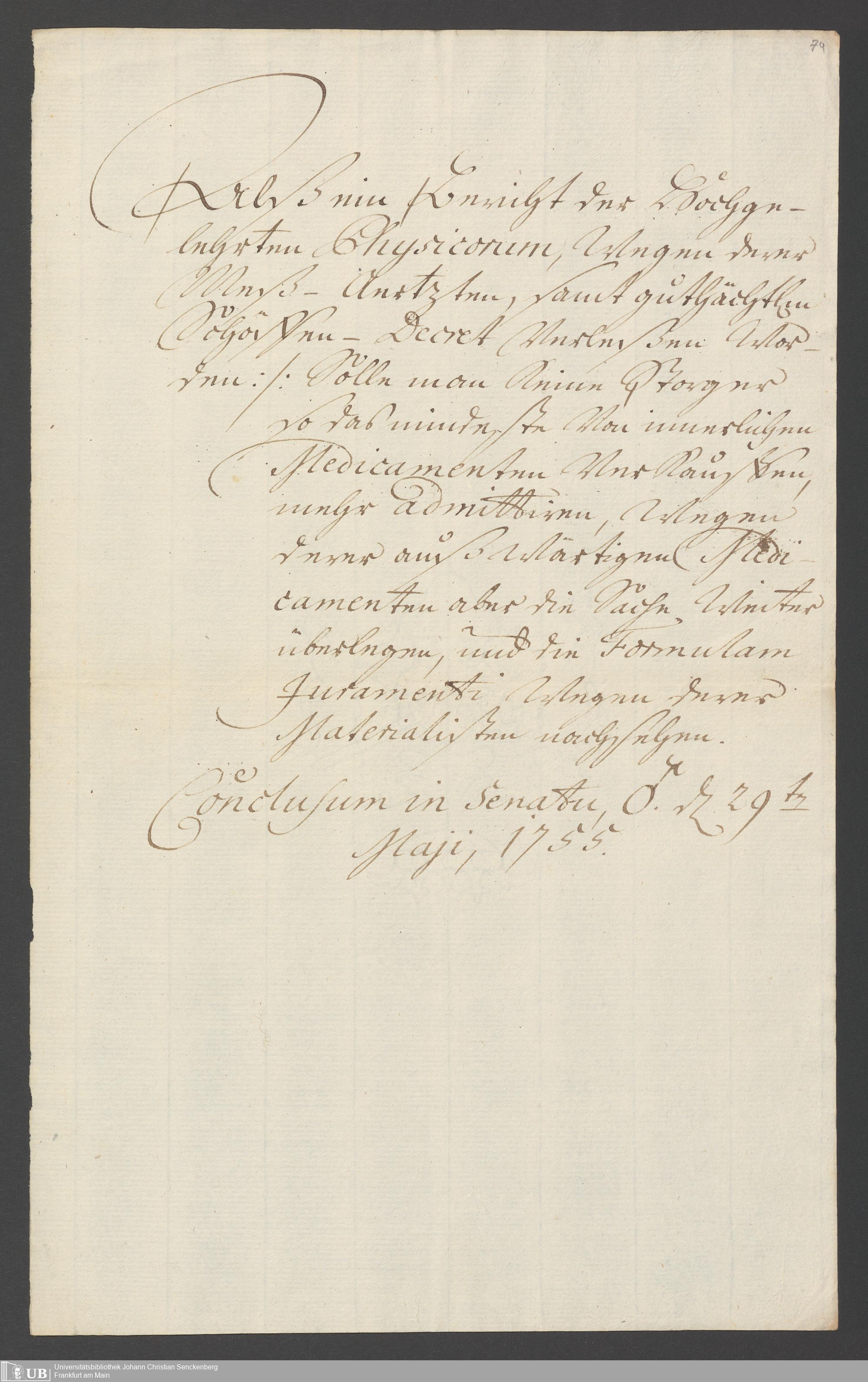 Na 31 Nachlass Johann Christian Senckenberg, 286 - Verfügungen des Sanitätsamtes