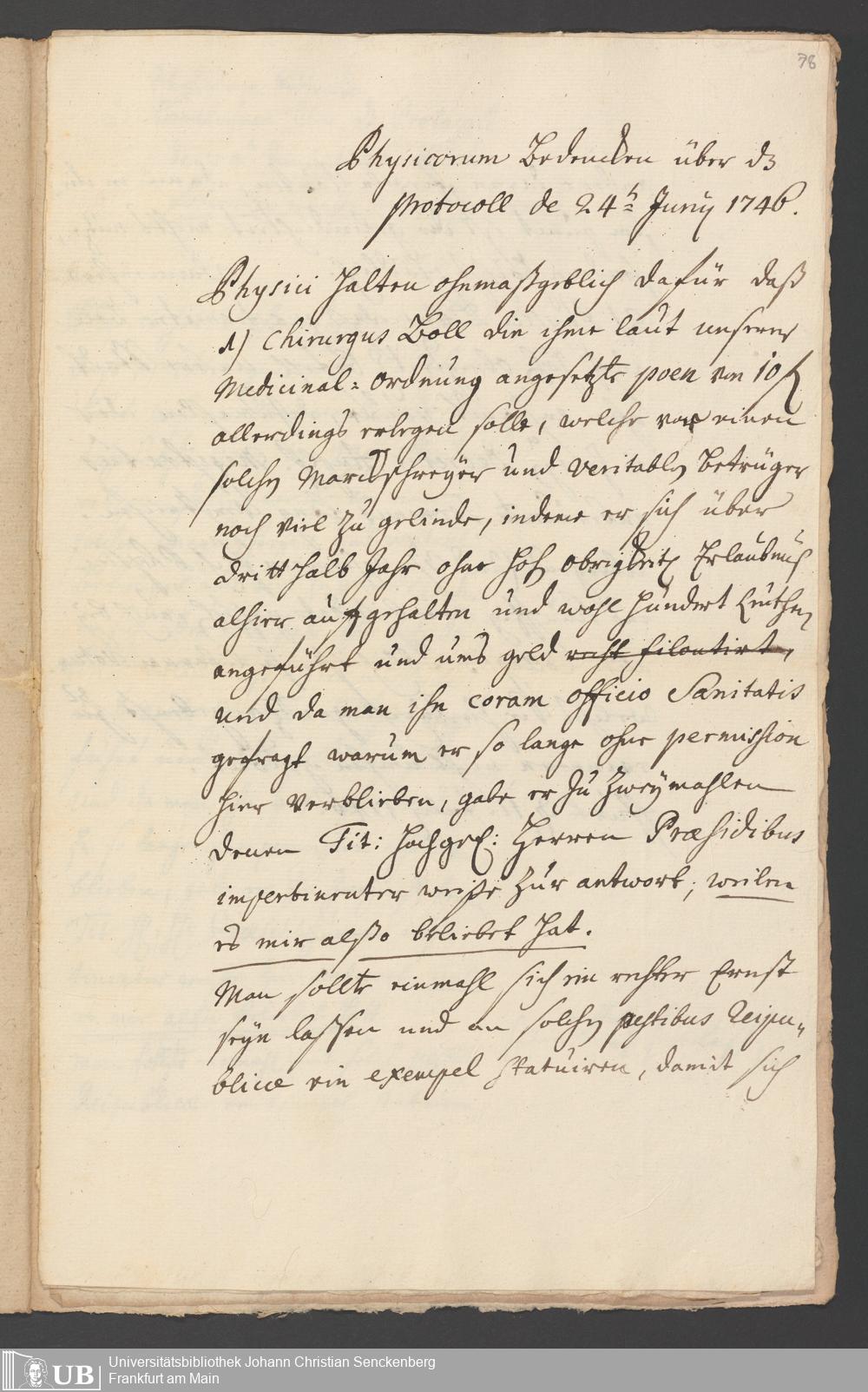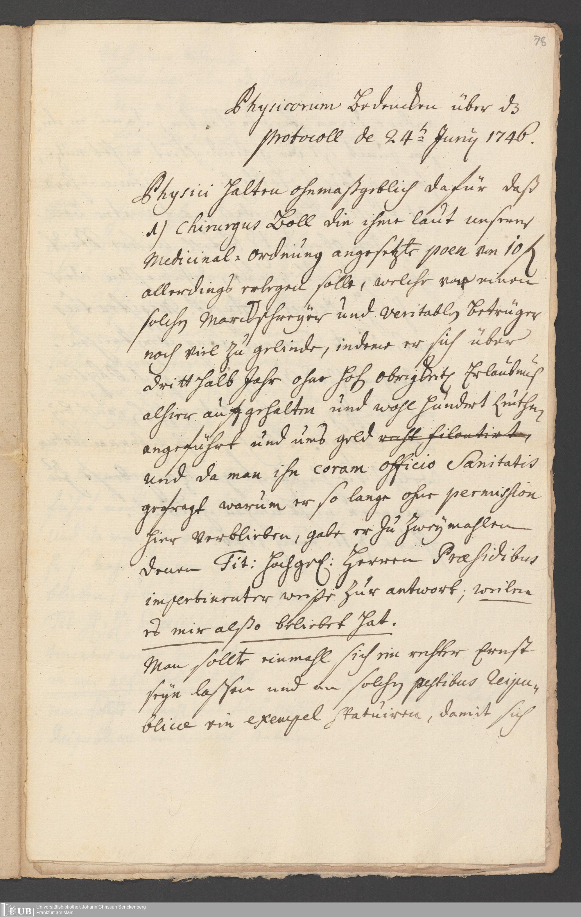 Na 31 Nachlass Johann Christian Senckenberg, 286 - Verfügungen des Sanitätsamtes