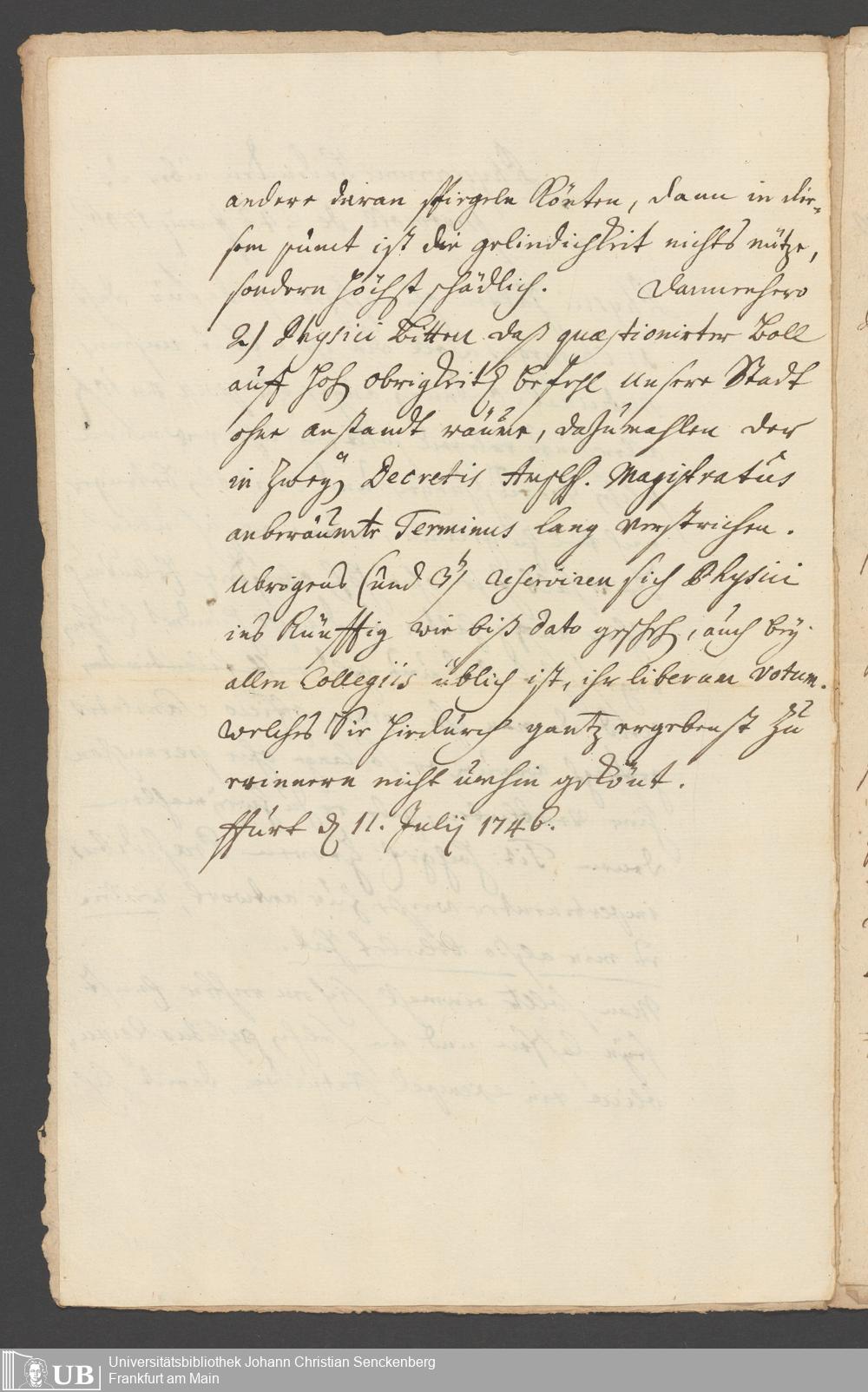 Na 31 Nachlass Johann Christian Senckenberg, 286 - Verfügungen des Sanitätsamtes