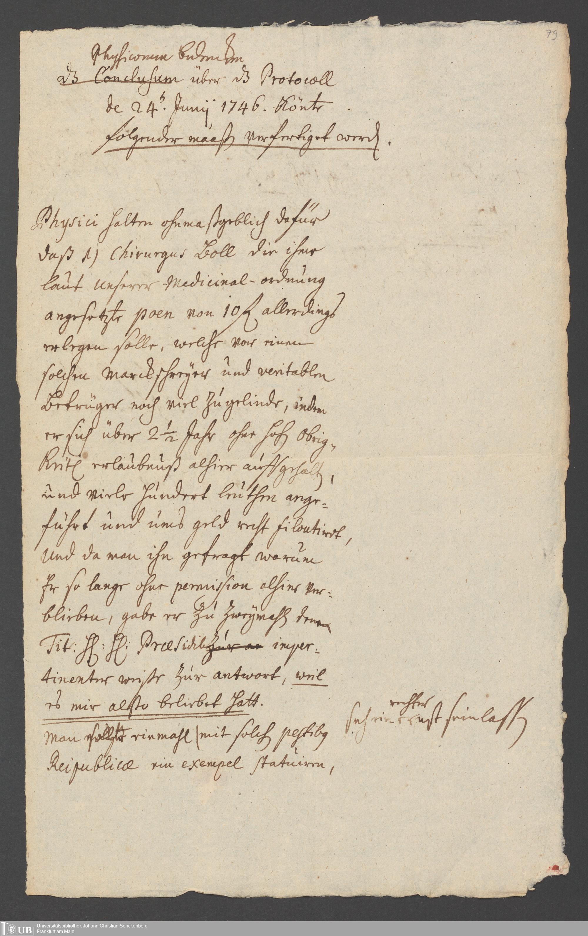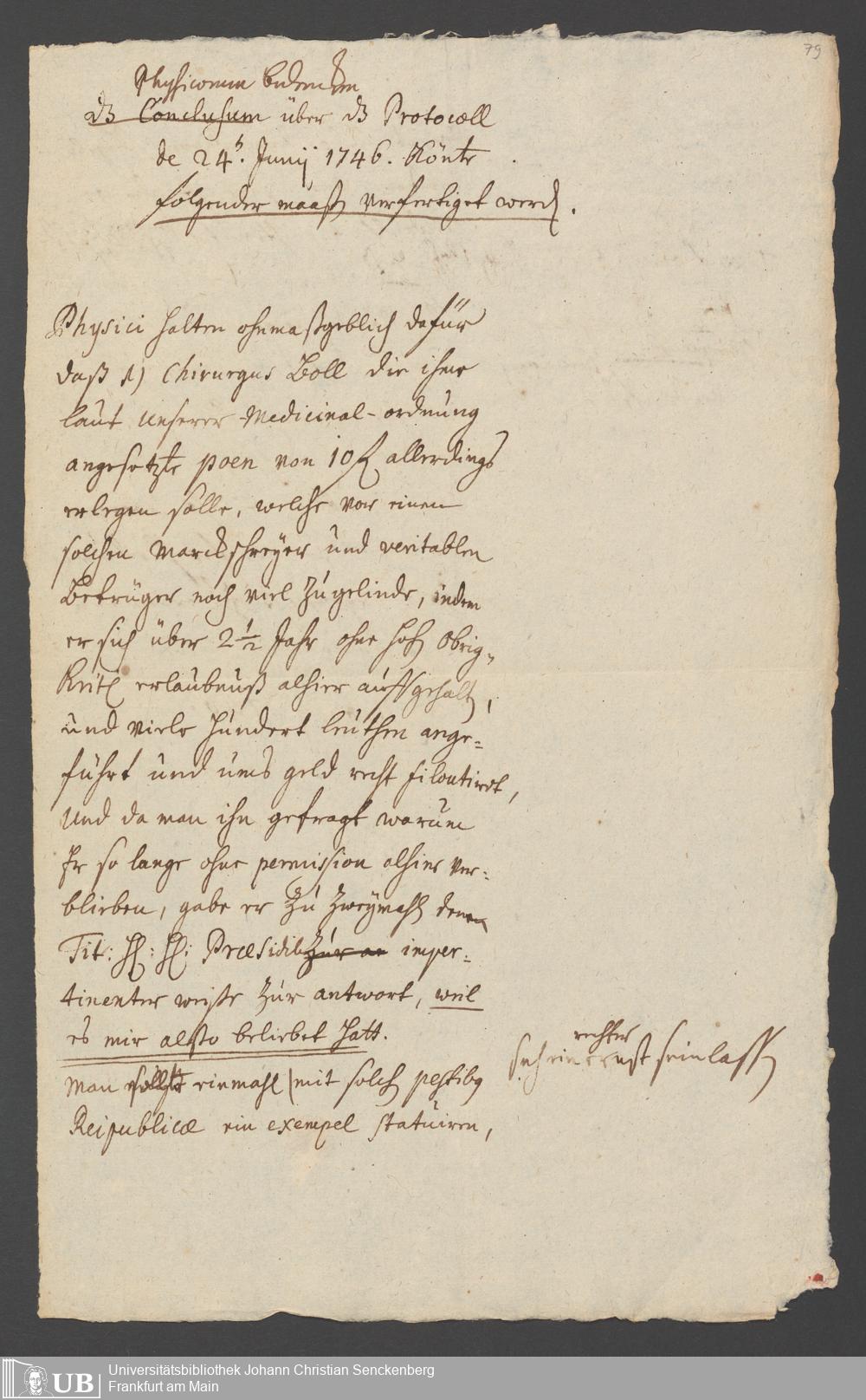 Na 31 Nachlass Johann Christian Senckenberg, 286 - Verfügungen des Sanitätsamtes