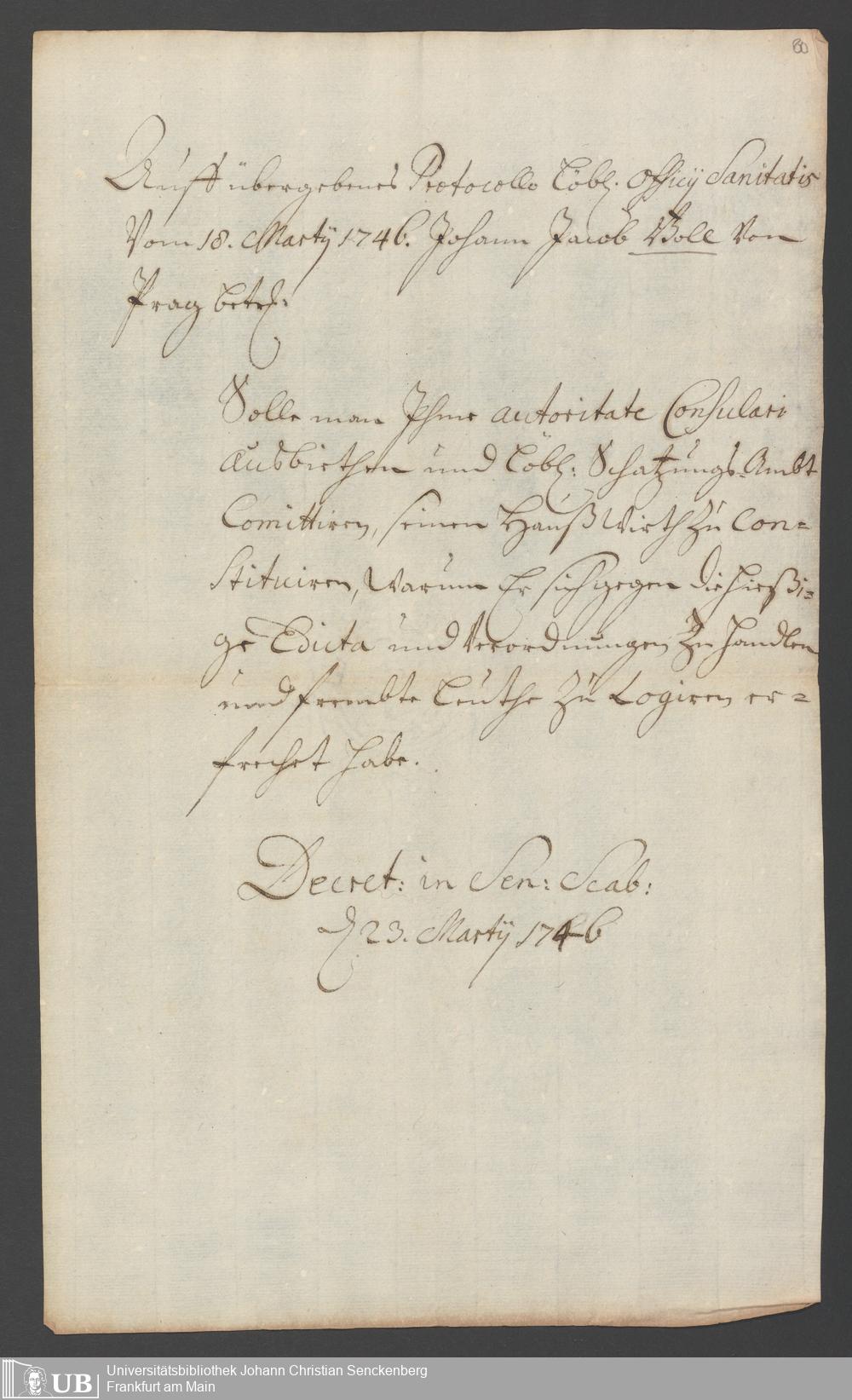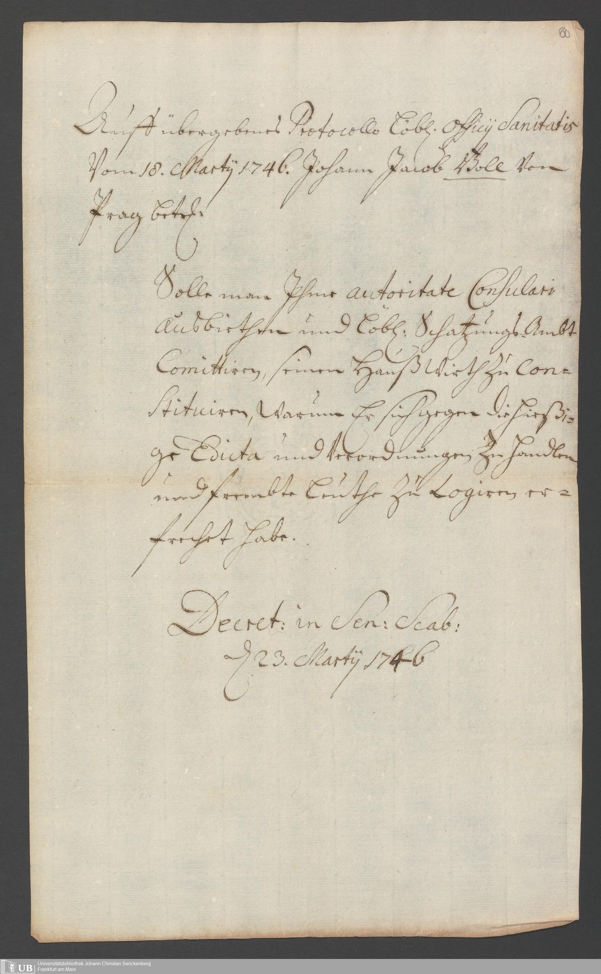 Na 31 Nachlass Johann Christian Senckenberg, 286 - Verfügungen des Sanitätsamtes