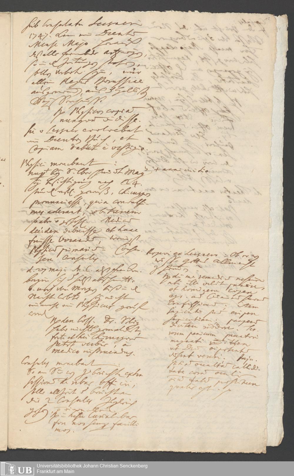 Na 31 Nachlass Johann Christian Senckenberg, 287 - Notizen Johann Christian Senckenbergs zum Sanitätsamt