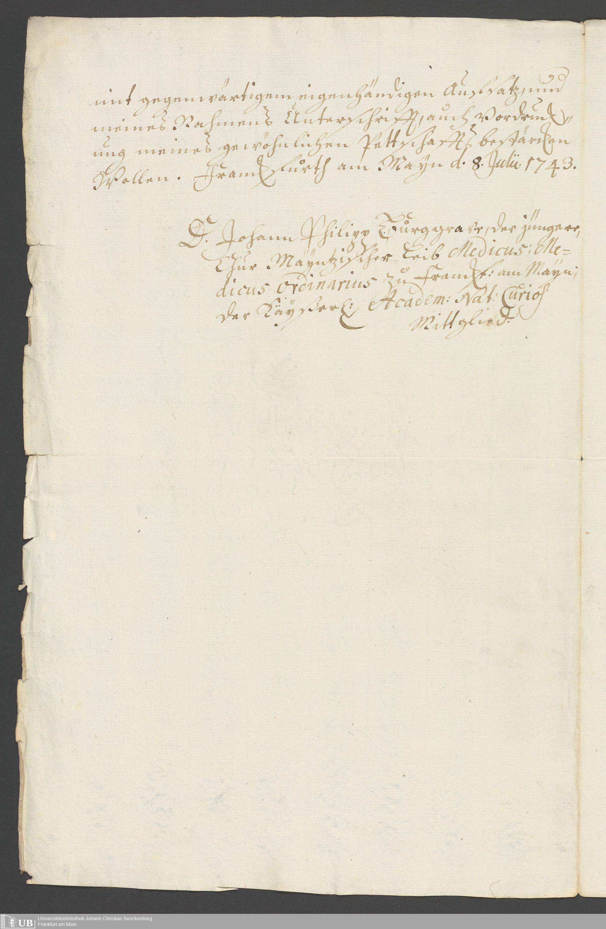 Na 31 Nachlass Johann Christian Senckenberg, 287 - Notizen Johann Christian Senckenbergs zum Sanitätsamt