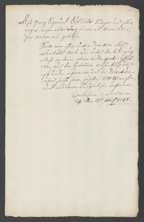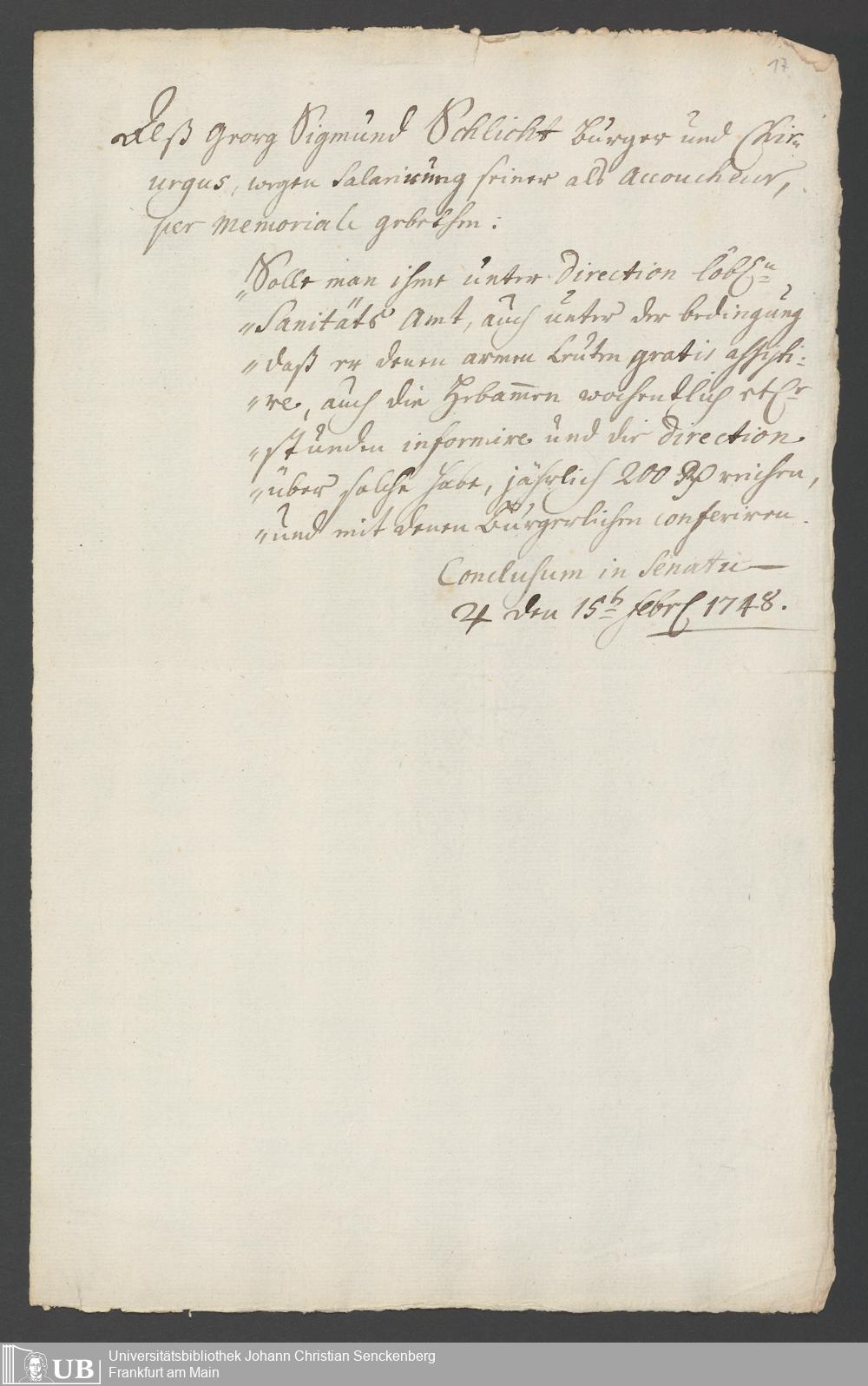 Na 31 Nachlass Johann Christian Senckenberg, 287 - Notizen Johann Christian Senckenbergs zum Sanitätsamt