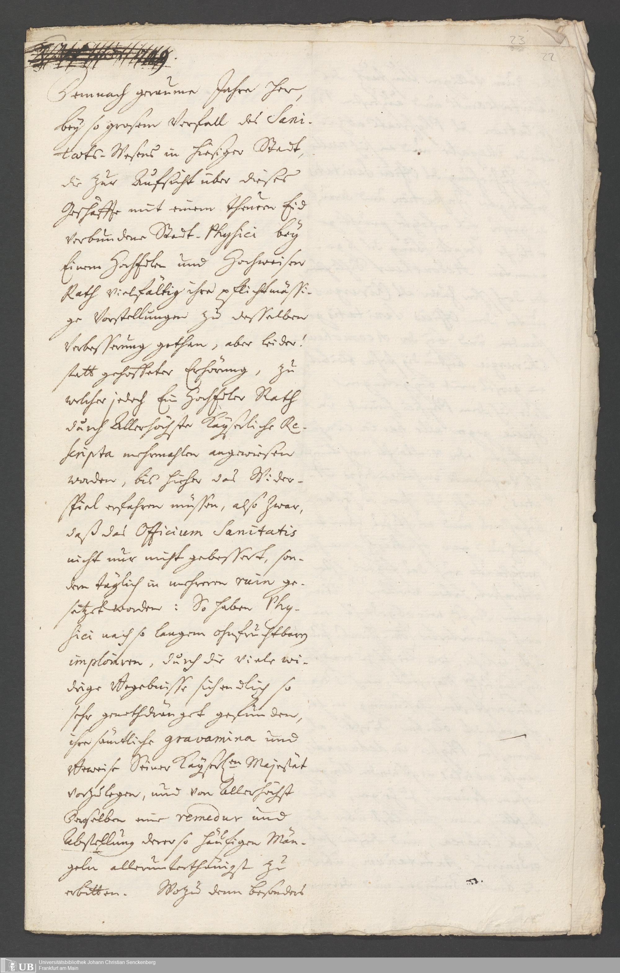 Na 31 Nachlass Johann Christian Senckenberg, 287 - Notizen Johann Christian Senckenbergs zum Sanitätsamt