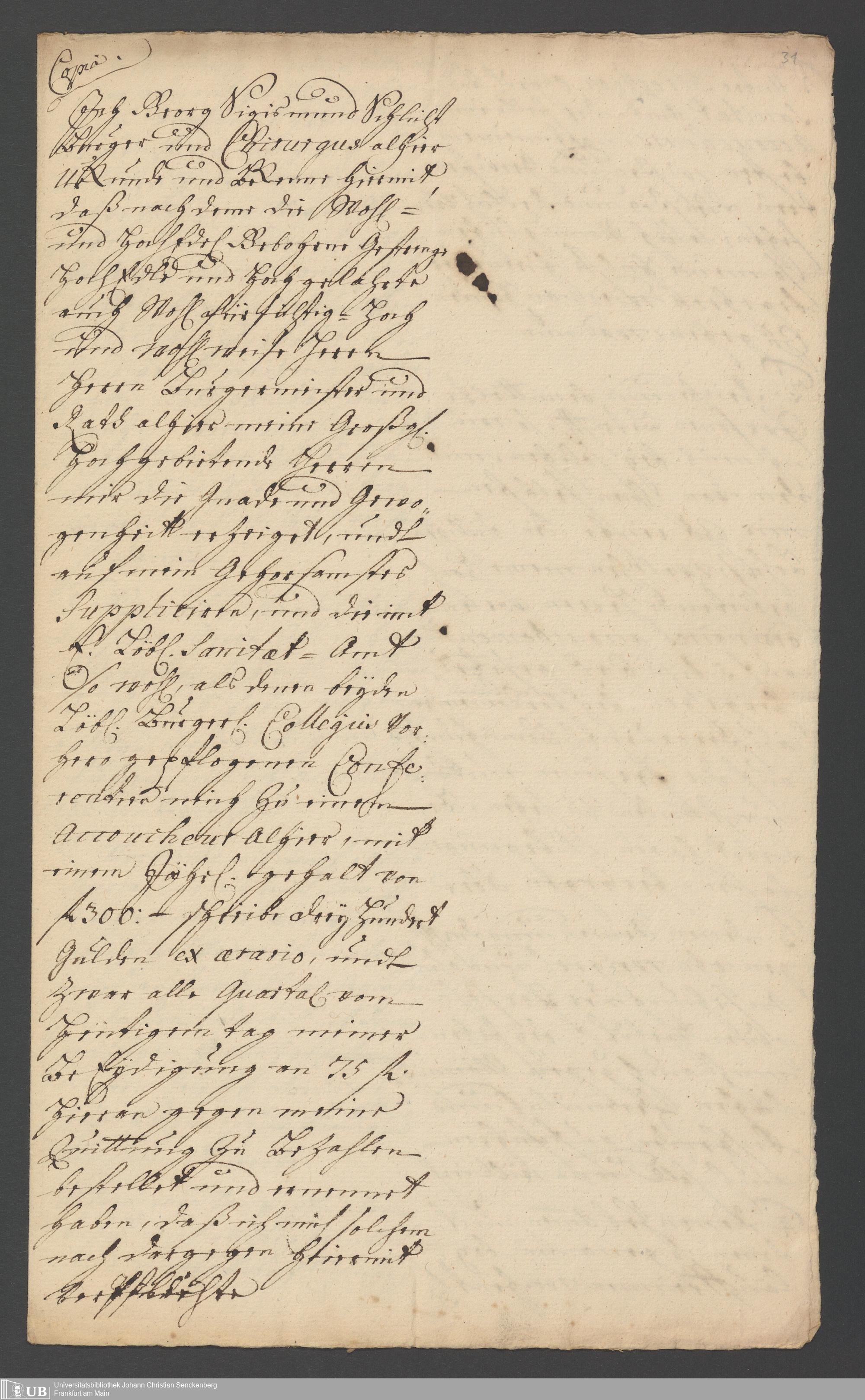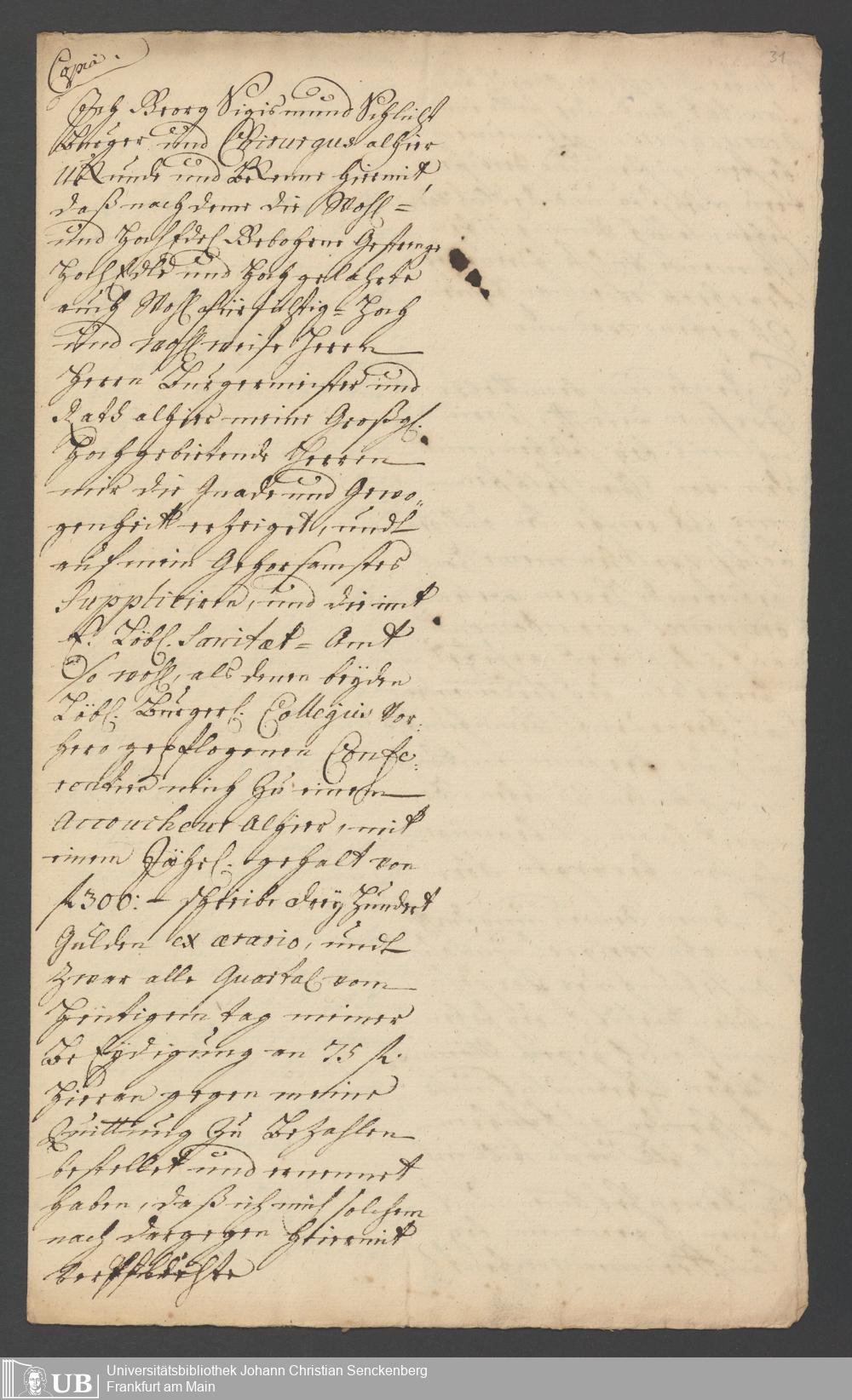 Na 31 Nachlass Johann Christian Senckenberg, 287 - Notizen Johann Christian Senckenbergs zum Sanitätsamt