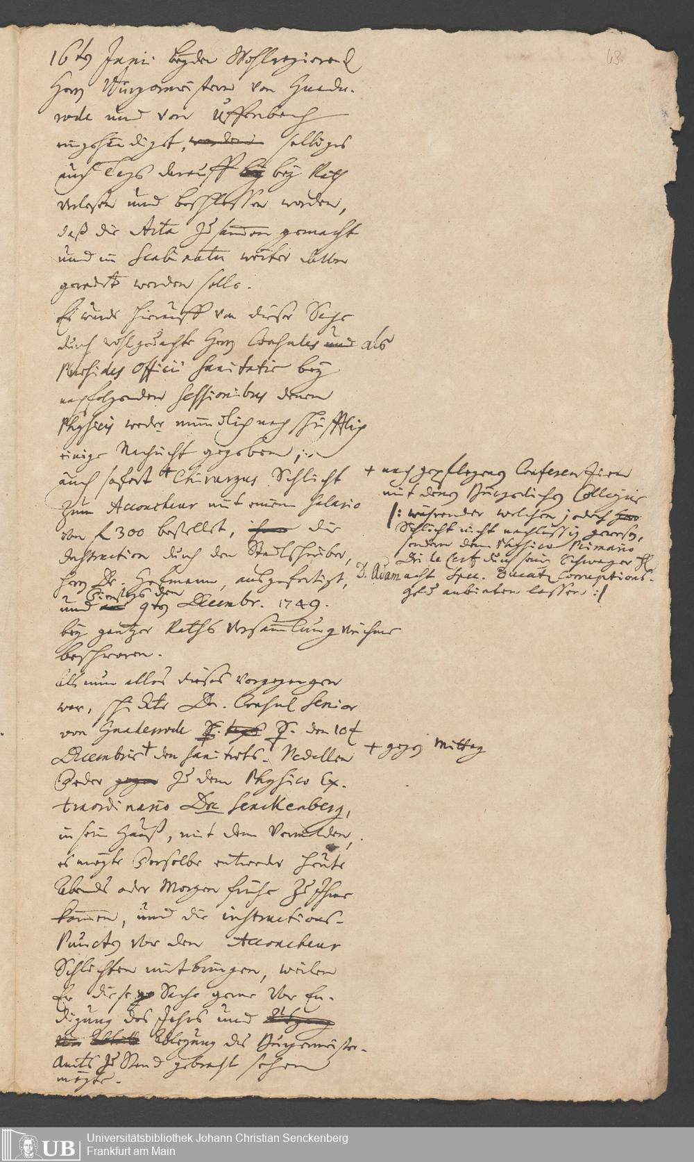 Na 31 Nachlass Johann Christian Senckenberg, 287 - Notizen Johann Christian Senckenbergs zum Sanitätsamt