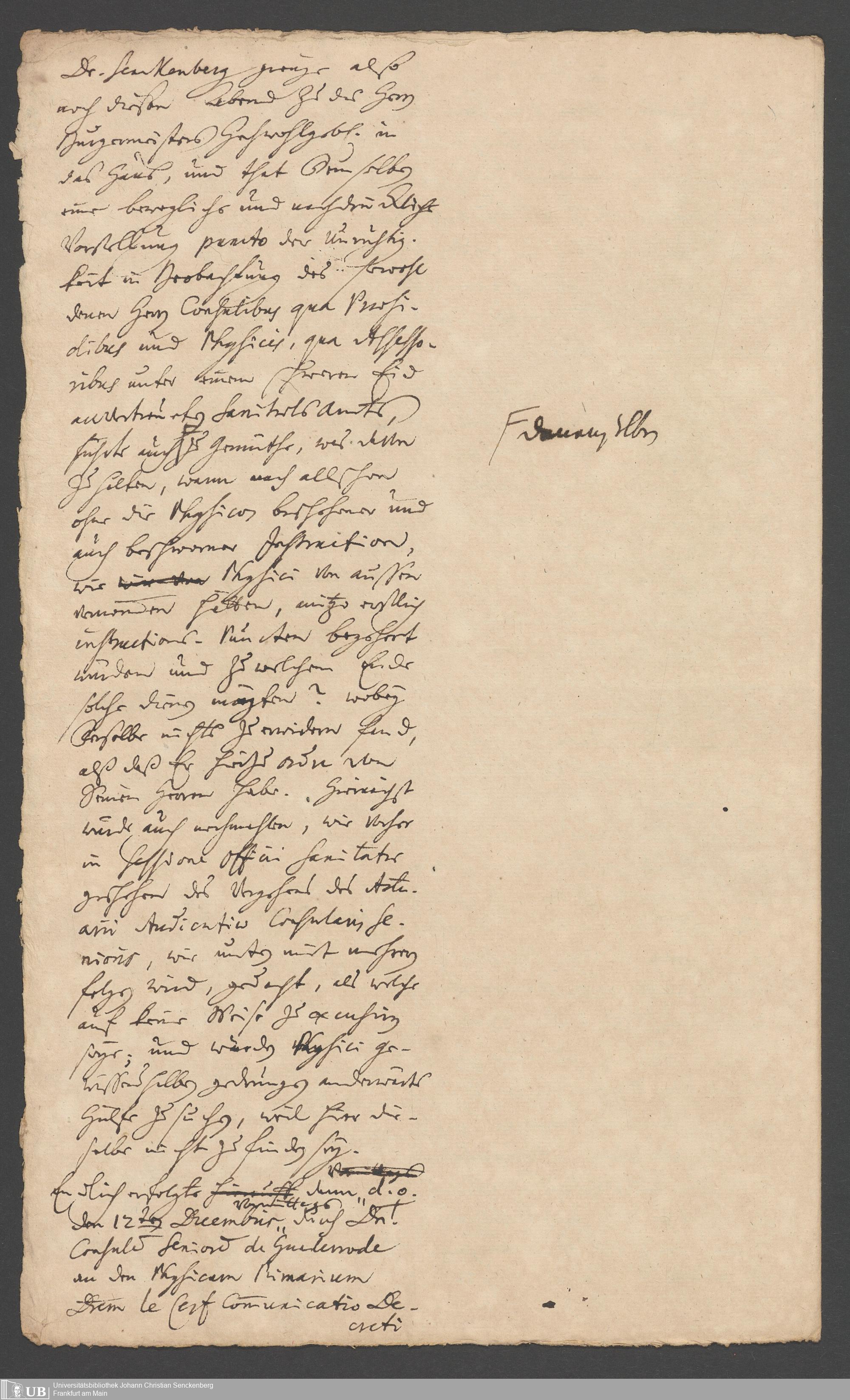 Na 31 Nachlass Johann Christian Senckenberg, 287 - Notizen Johann Christian Senckenbergs zum Sanitätsamt