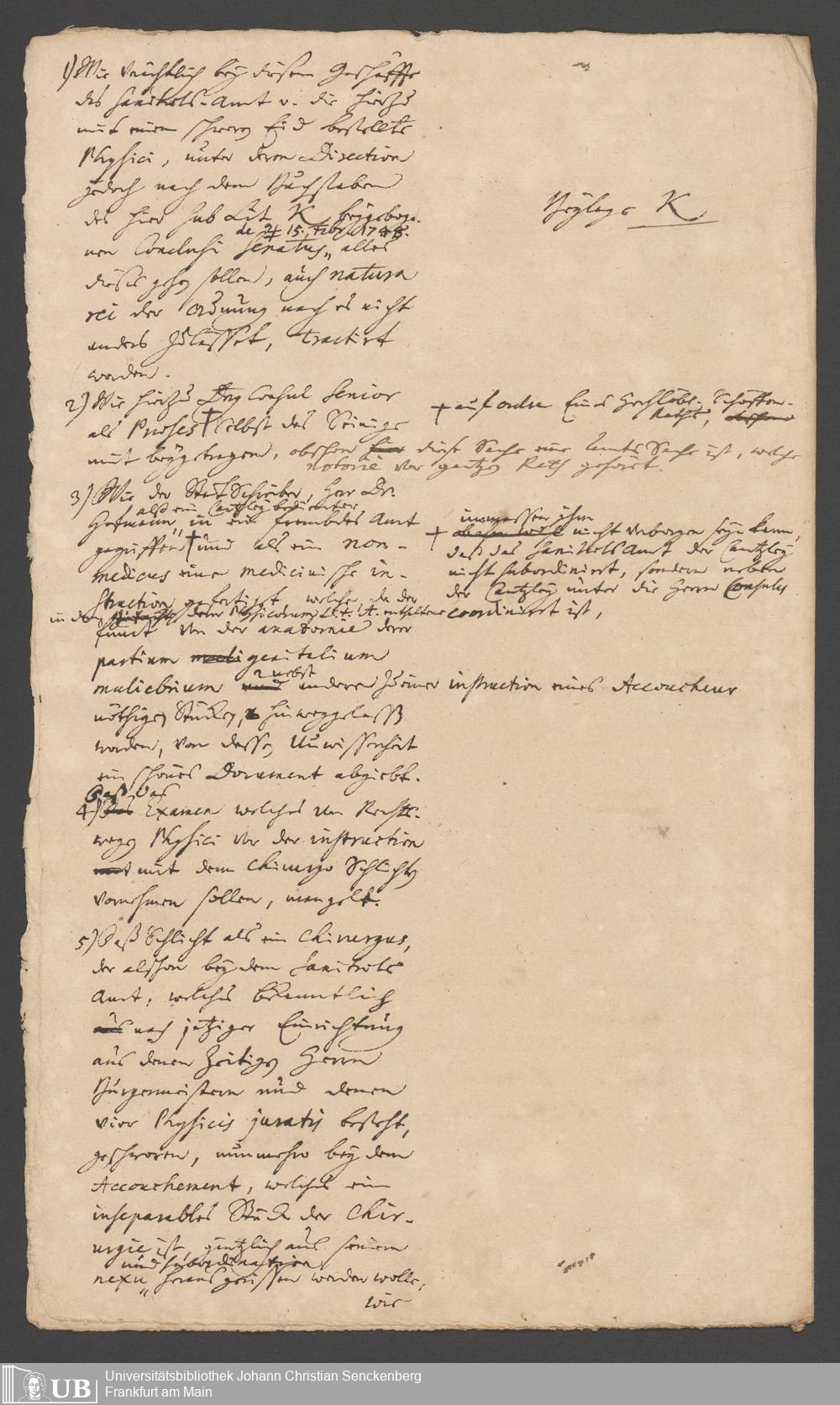 Na 31 Nachlass Johann Christian Senckenberg, 287 - Notizen Johann Christian Senckenbergs zum Sanitätsamt