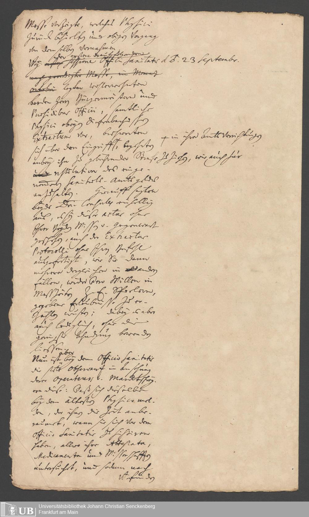 Na 31 Nachlass Johann Christian Senckenberg, 287 - Notizen Johann Christian Senckenbergs zum Sanitätsamt